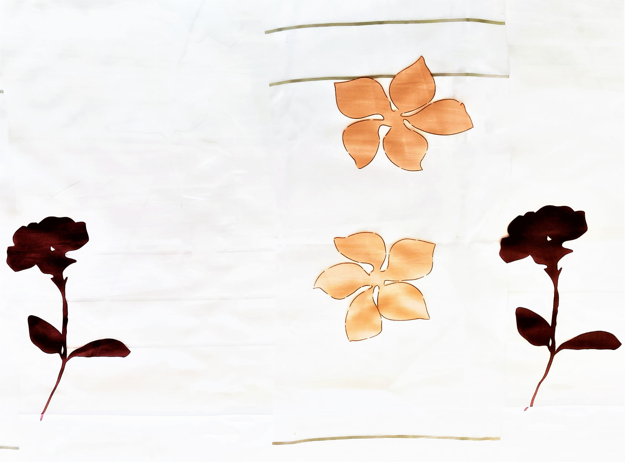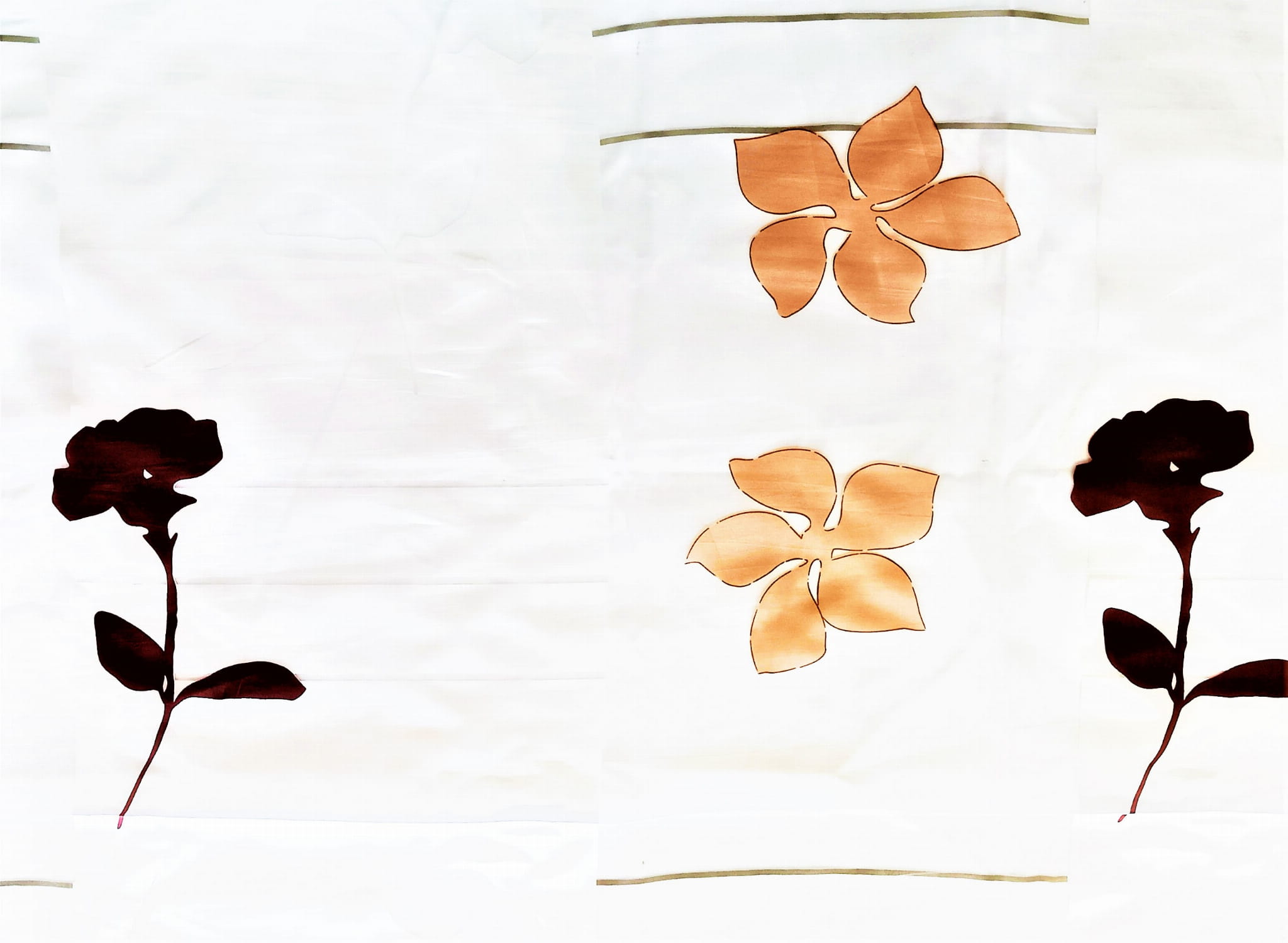 PAS BIAŁY Z BRĄZOWYM ORNAMENTEM I PAS PRZEZROCZYSTY Z ORNAMENTEM BEŻOWYM UŁOŻONE SĄ NAPRZEMIENNIE.