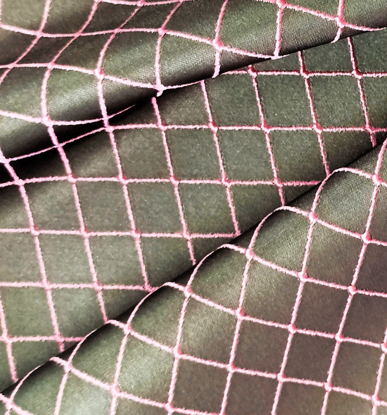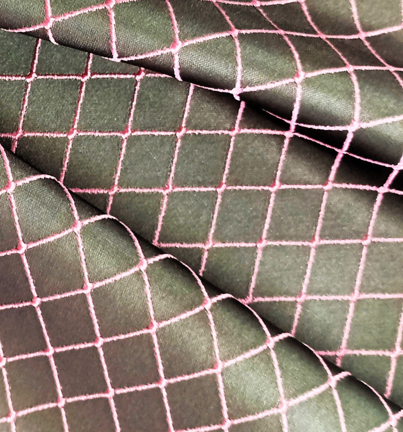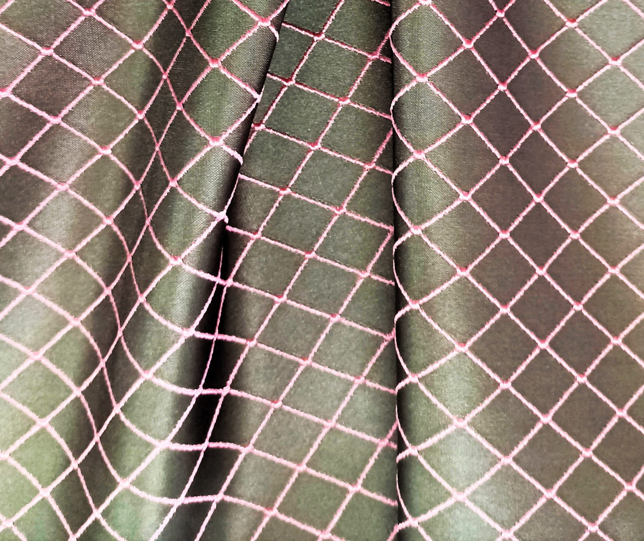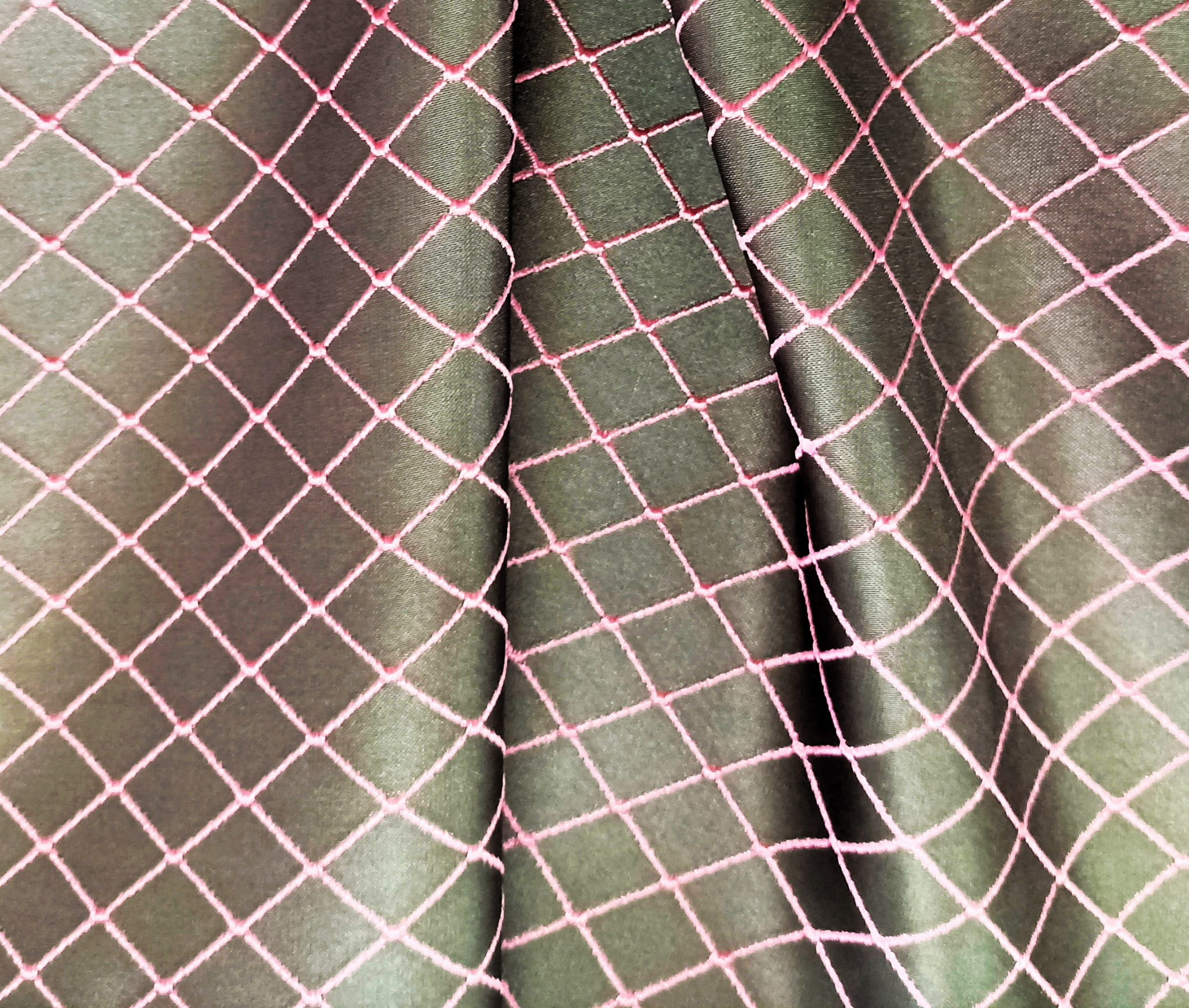 ORYGINALNA TKANINA ZASŁONOWA MODNY WZÓR GEOMETRYCZNY ROMBY W EFEKTOWNYCH BARWACH NASYCONEJ SZAROŚCI I PUDROWEGO RÓŻU POŁYSK GLAMOUR SZEROKOŚĆ 140 CM PRODUCENT MDM FIRANY