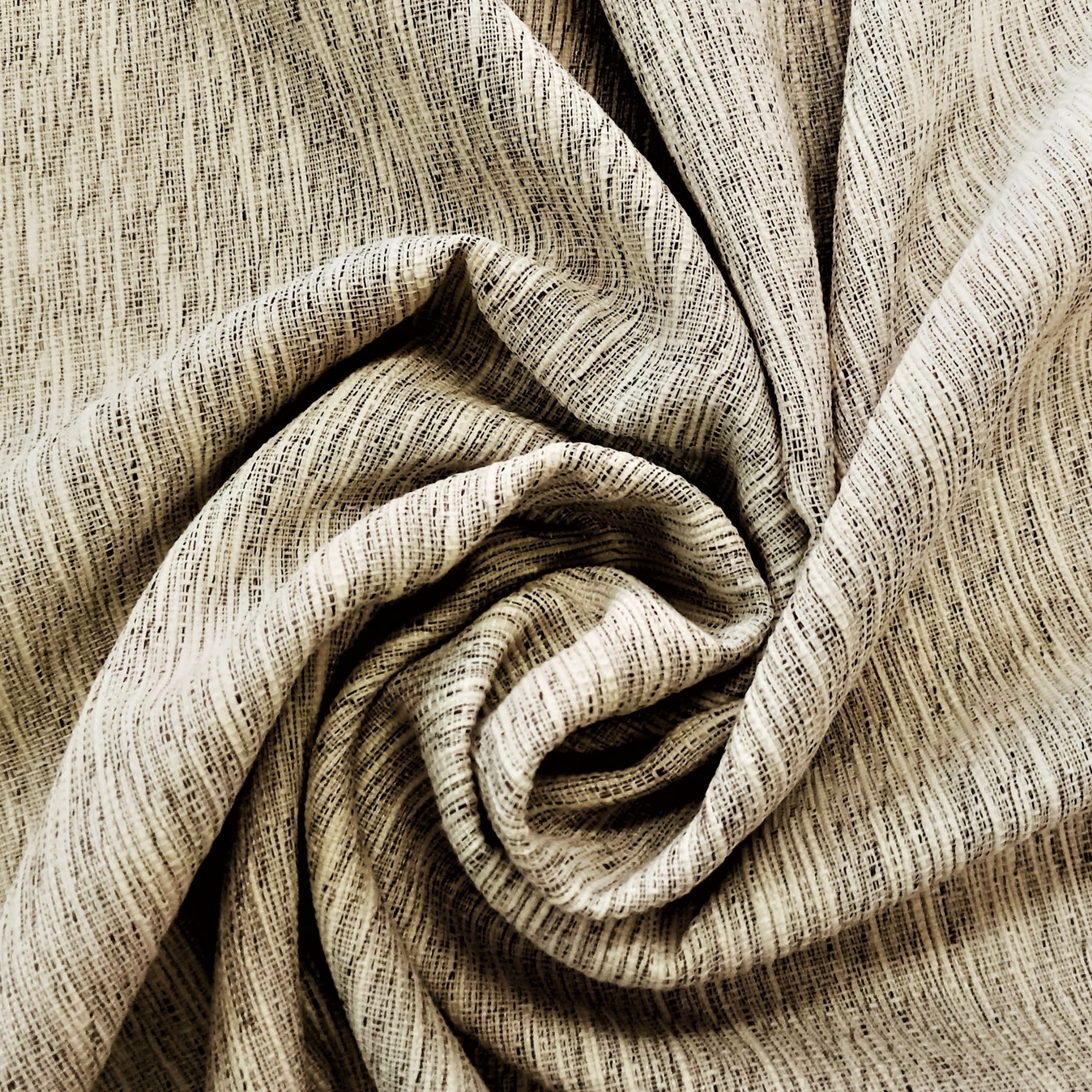 ORYGINALNA TKANINA ZASŁONOWA O STRUKTURZE LNU W MODNEJ BARWIE CIEMNEGO BEŻU SZEROKOŚĆ 170 CM PRODUCENT CHEMEKS PORAJ