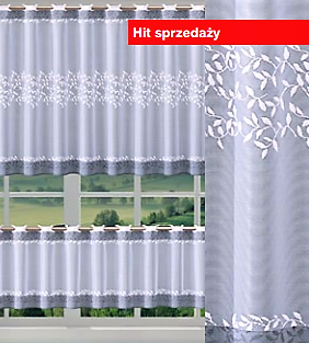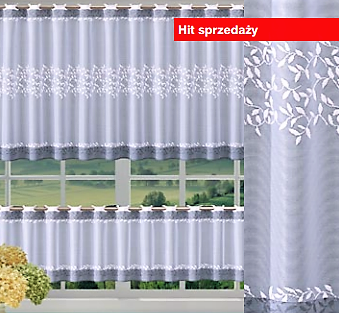 ORYGINALNA ŻAKARDOWA ZAZDROSTKA KUCHENNA W BIAŁYM KOLORZE Z DELIKATNYM ORNAMENTEM I WYKOŃCZENIAMI W KOLORZE PASTELOWEJ SZAROŚCI TO NIEPOWTARZALNĄ OZDOBA OKNA W KUCHNI LUB W JADALNI. DZIĘKI SWOJEJ UNIKALNEJ STRUKTURZE ZAZDROSTKA DOBRZE PRZEPUSZCZA PROMIENIE SŁONECZNE, IDEALNIE OCIEPLA POMIESZCZENIE, DODAJĄC BLASKU ORAZ ROZŚWIETLENIA. FINEZYJNY, PEŁEN UROKU WZÓR W POŁĄCZENIU Z OZDOBNYM GÓRNYM ORAZ DOLNYM SZLAKIEM W BARWIE POPIELATO - SZAREJ STANOWI PRZEPIĘKNĄ DEKORACJĘ I NADAJE WNĘTRZU SUBTELNIE ELEGANCKIEGO CHARAKTERU.