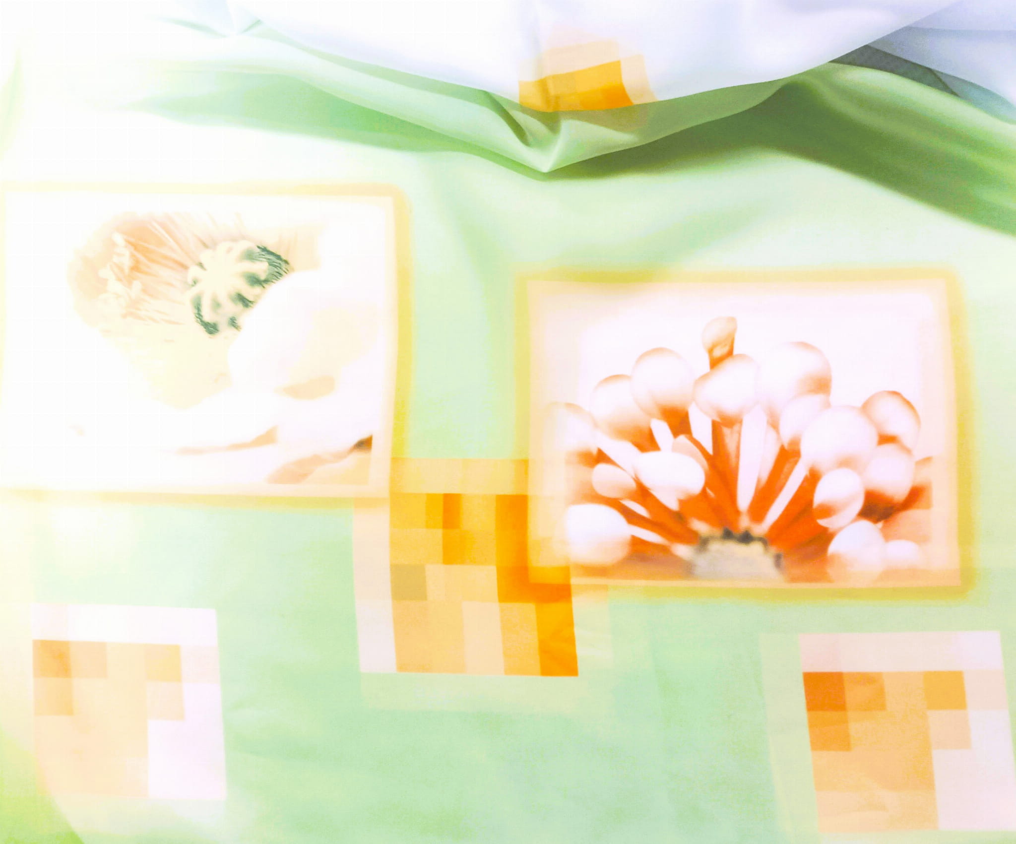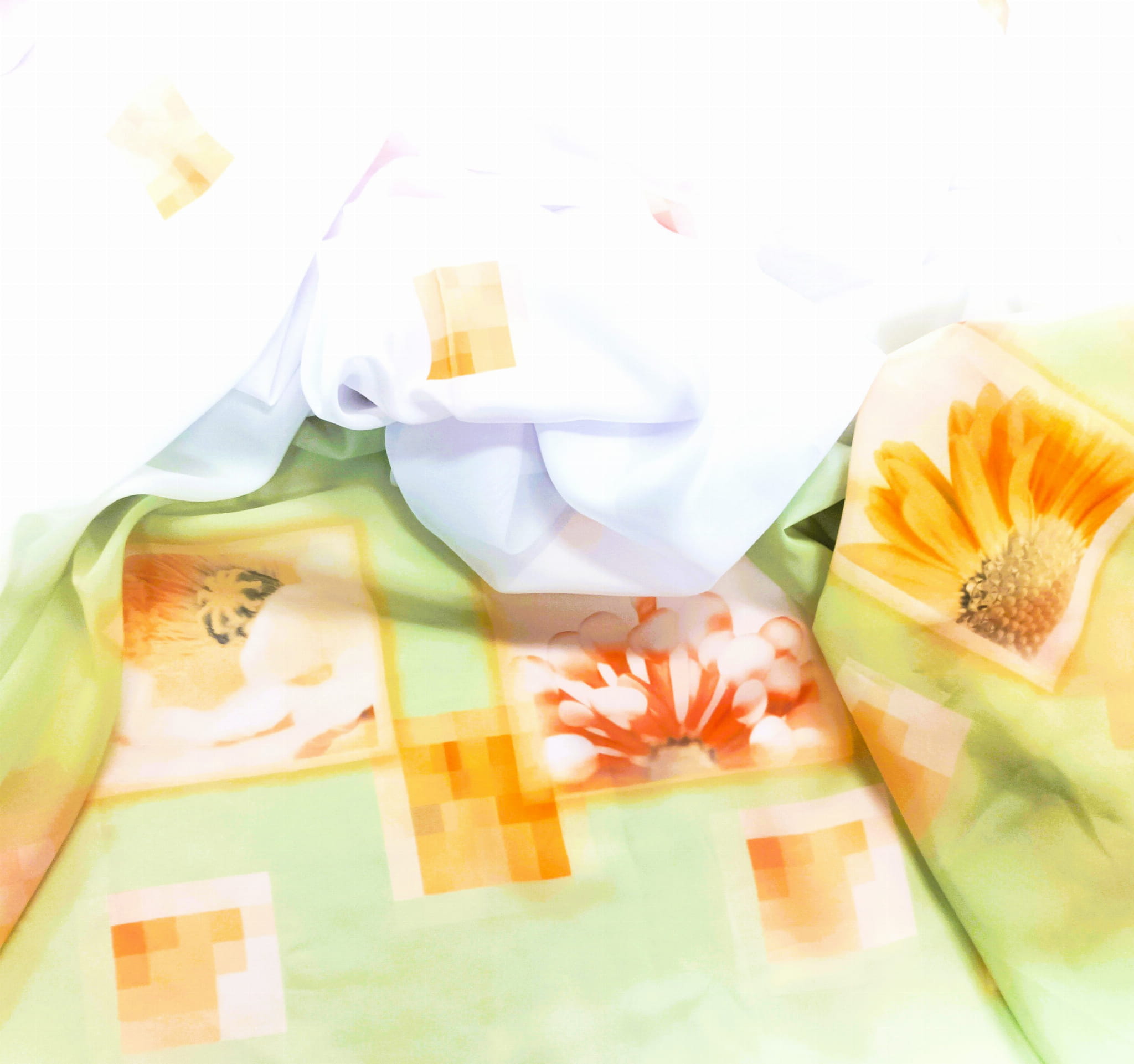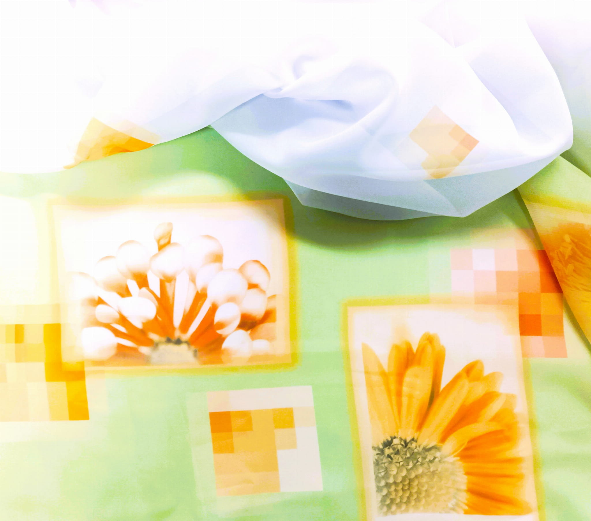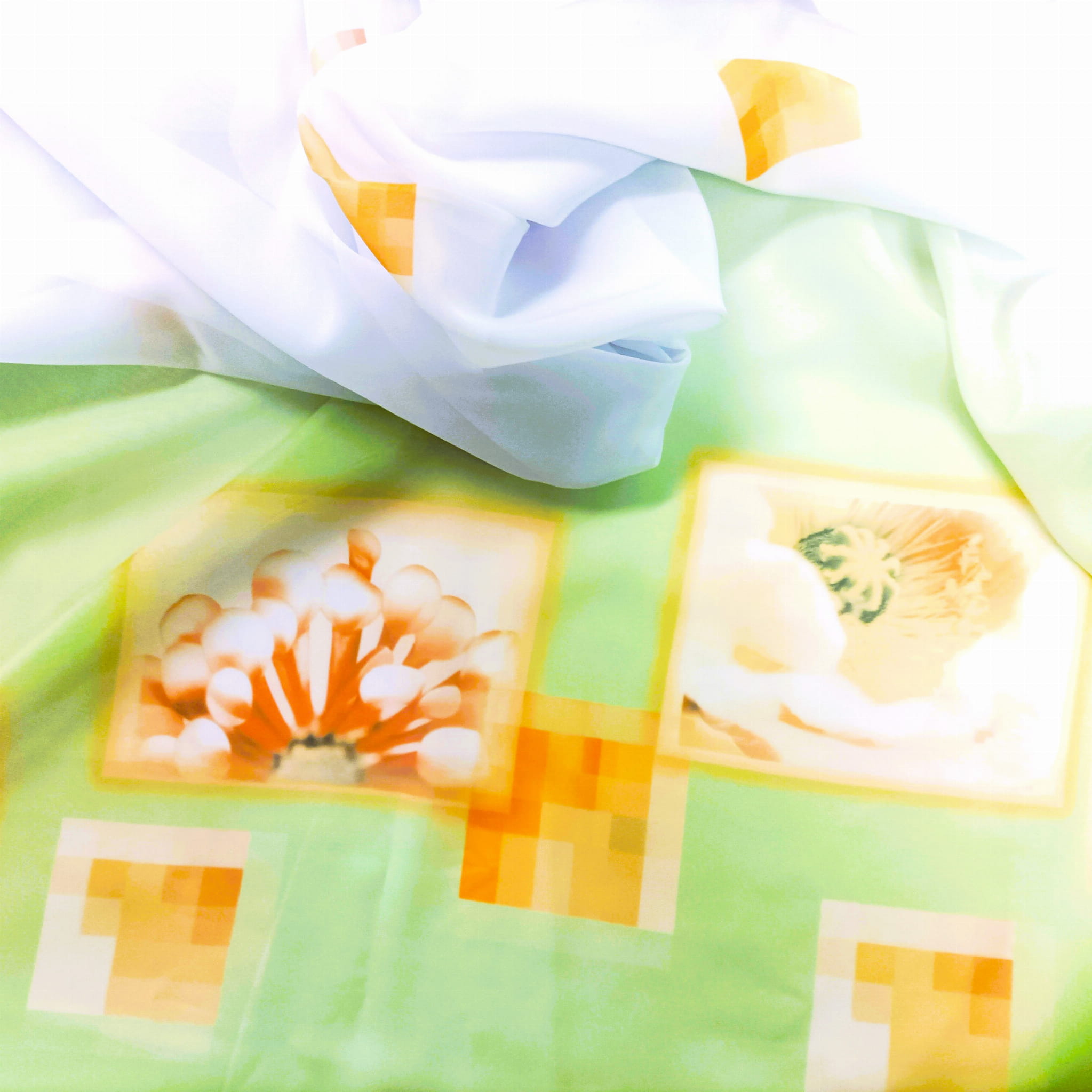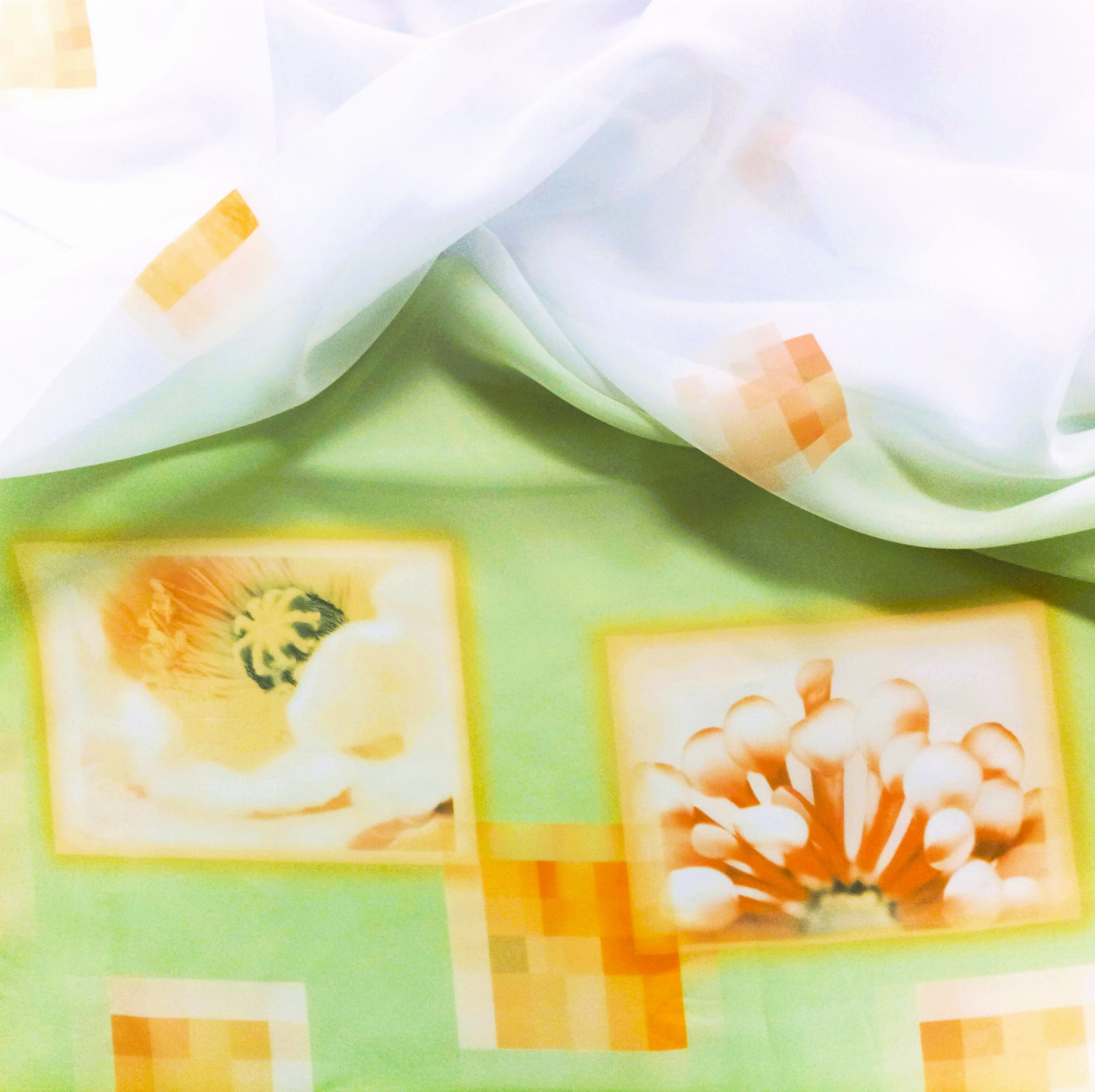 ORYGINALNY WOAL KOLOR BIAŁY Z WZOREM GEOMETRYCZNYM ORAZ EFEKTOWNYM DOLNYM ZDOBIENIEM W POSTACI MOTYWU KWIATOWEGO NA DELIKATNIE ZIELONYM TLE PREZENTUJE SIĘ NIEZWYKLE STYLOWO JAKO DEKORACYJNA FIRANA LUB OZDOBNA ZASŁONA. KOLOROWY PRINT WPROWADZA NATURALNĄ ŚWIEŻOŚĆ, BLASK I ROZŚWIETLENIE. DZIĘKI SWOJEJ MLECZNEJ STRUKTURZE WOAL DYSKRETNIE PRZEPUSZCZA PROMIENIE SŁONECZNE, ROZJAŚNIA PRZESTRZEŃ, NADAJĄC SPEKTAKULARNEGO CHARAKTERU W KLIMACIE BOHO, ART DECO ORAZ GLAMOUR.