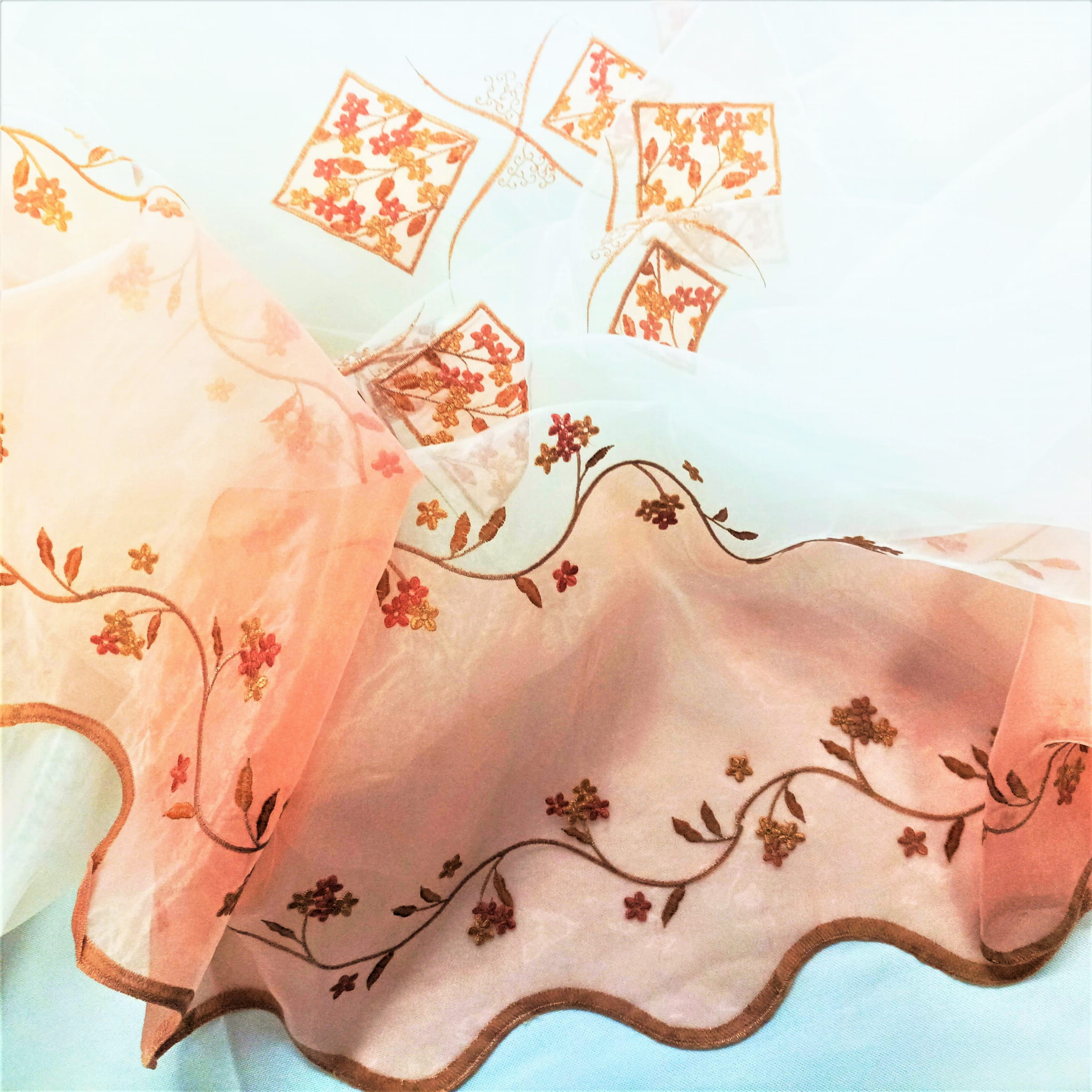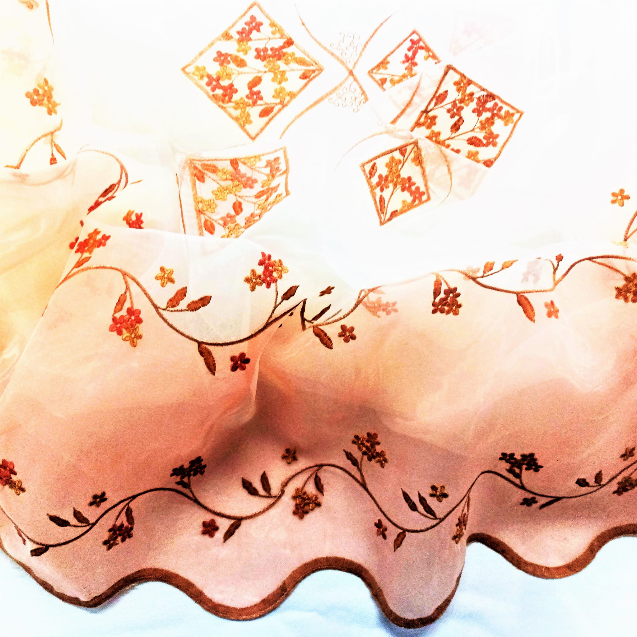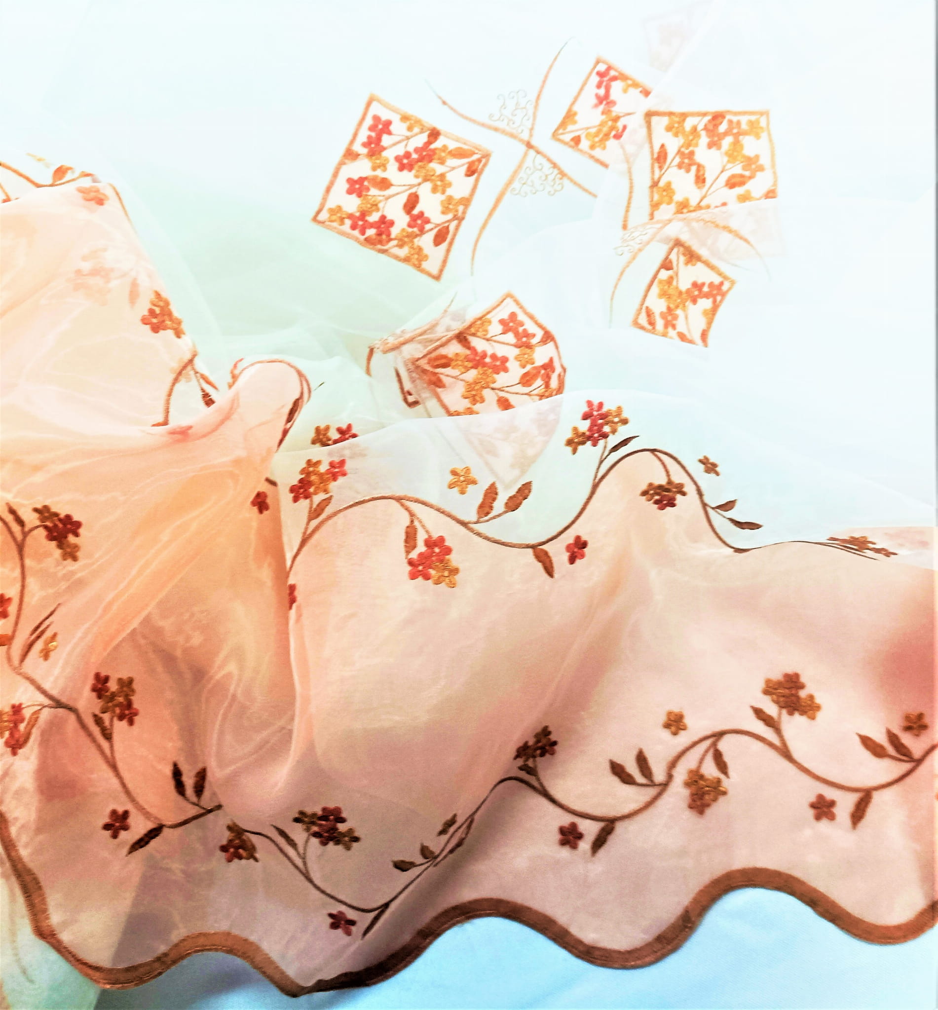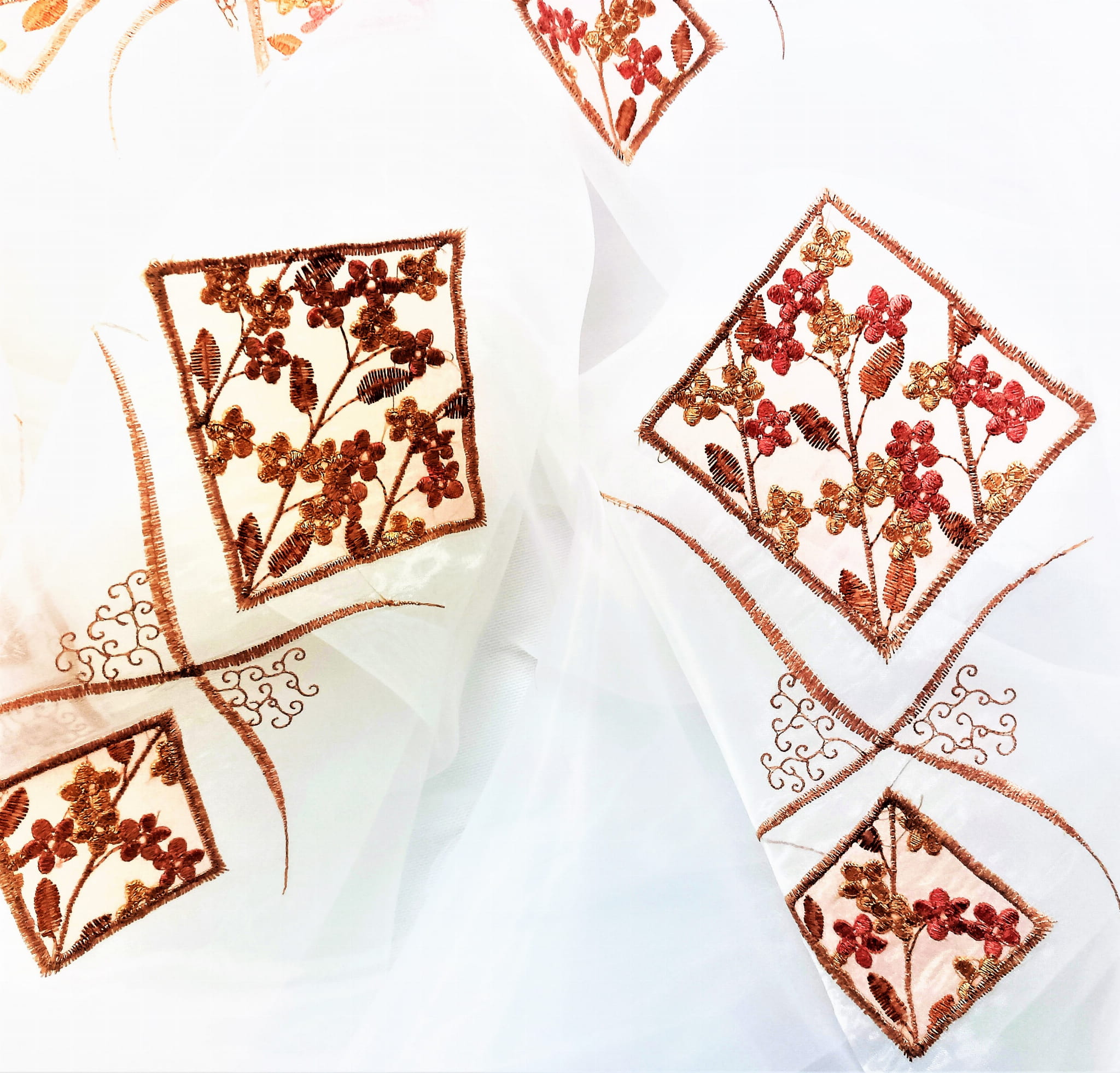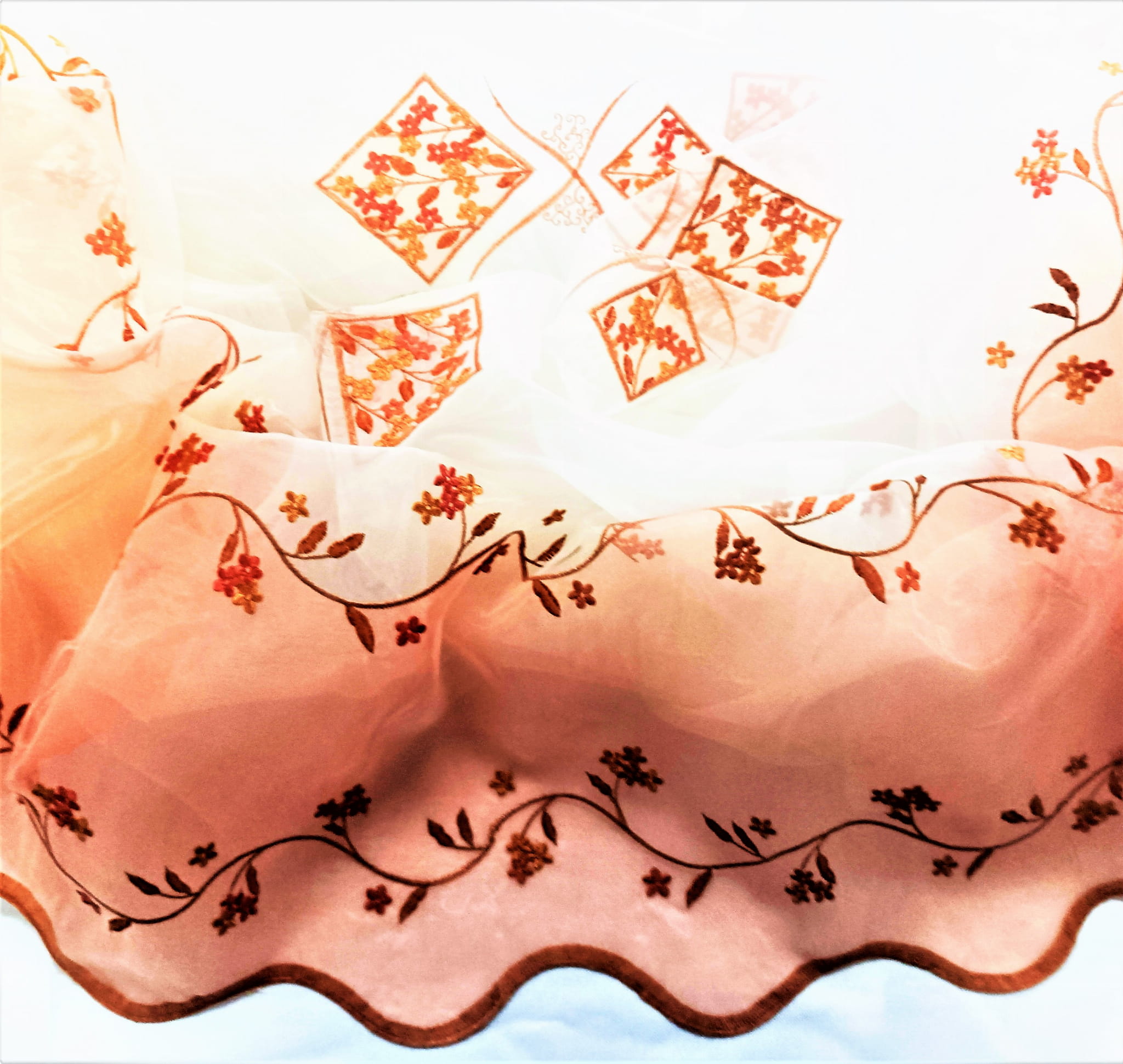 PEŁNA UROKU ORGANTYNA PREMIUM Z ORYGINALNYM, HAFTOWANYM WZOREM W POSTACI KWIATOWYCH ORNAMENTÓW W PIĘKNEJ BARWIE RÓŻOWEJ NA BIAŁYM TLE Z DELIKATNYM POŁYSKIEM GLAMOUR PREZENTUJE SIĘ BARDZO EFEKTOWNIE. LEKKA, ZWIEWNA I NIEZWYKLE STYLOWA ORGANTYNA PODKREŚLA ELEGANCKI CHARAKTER WNĘTRZ ROMANTYCZNYCH, BOHO, VINTAGE, RETRO, EKLEKTYCZNYCH I RUSTYKALNYCH. DYSKRETNIE ROZPRASZA ŚWIATŁO, DODAJE BLASKU I OCIEPLA PRZESTRZEŃ. IDEALNIE DOBRANY, HAFTOWANY PRINT DOSKONALE HARMONIZUJE Z CIEPŁYM ODCIENIEM SUBTELNEGO RÓŻU ORAZ DOLNYM WYKOŃCZENIEM Z MODNEJ TKANINY TYPU SZANTUNG W RÓŻOWEJ BARWIE, TWORZĄC SPEKTAKULARNY EFEKT ARANŻACYJNY.