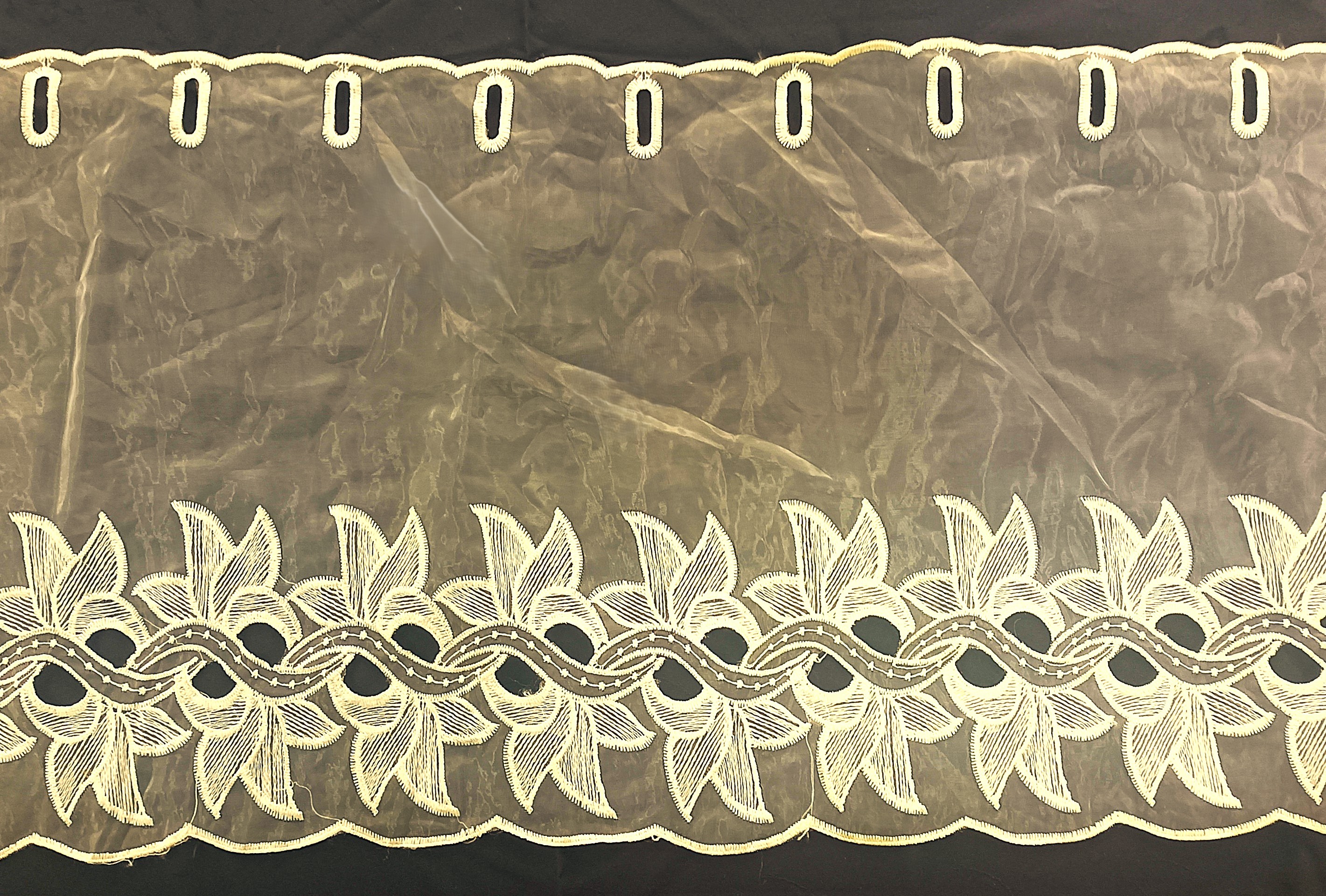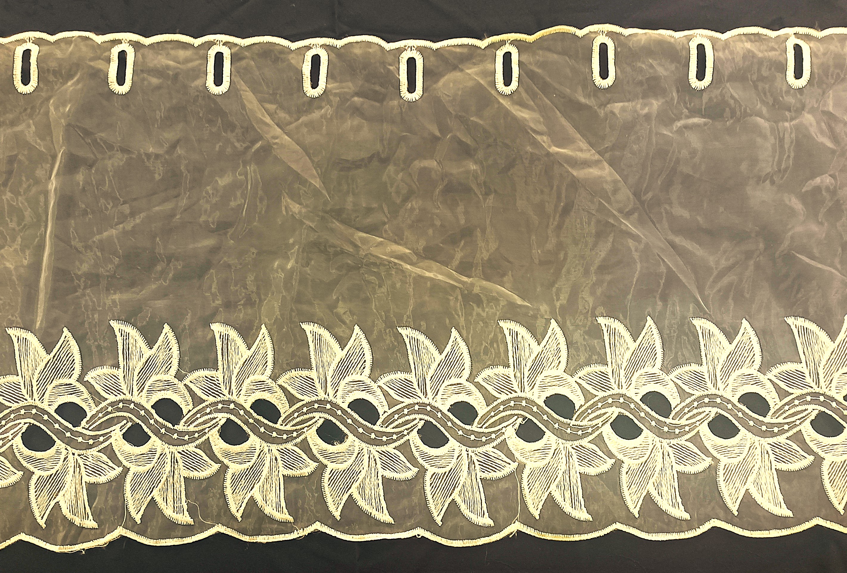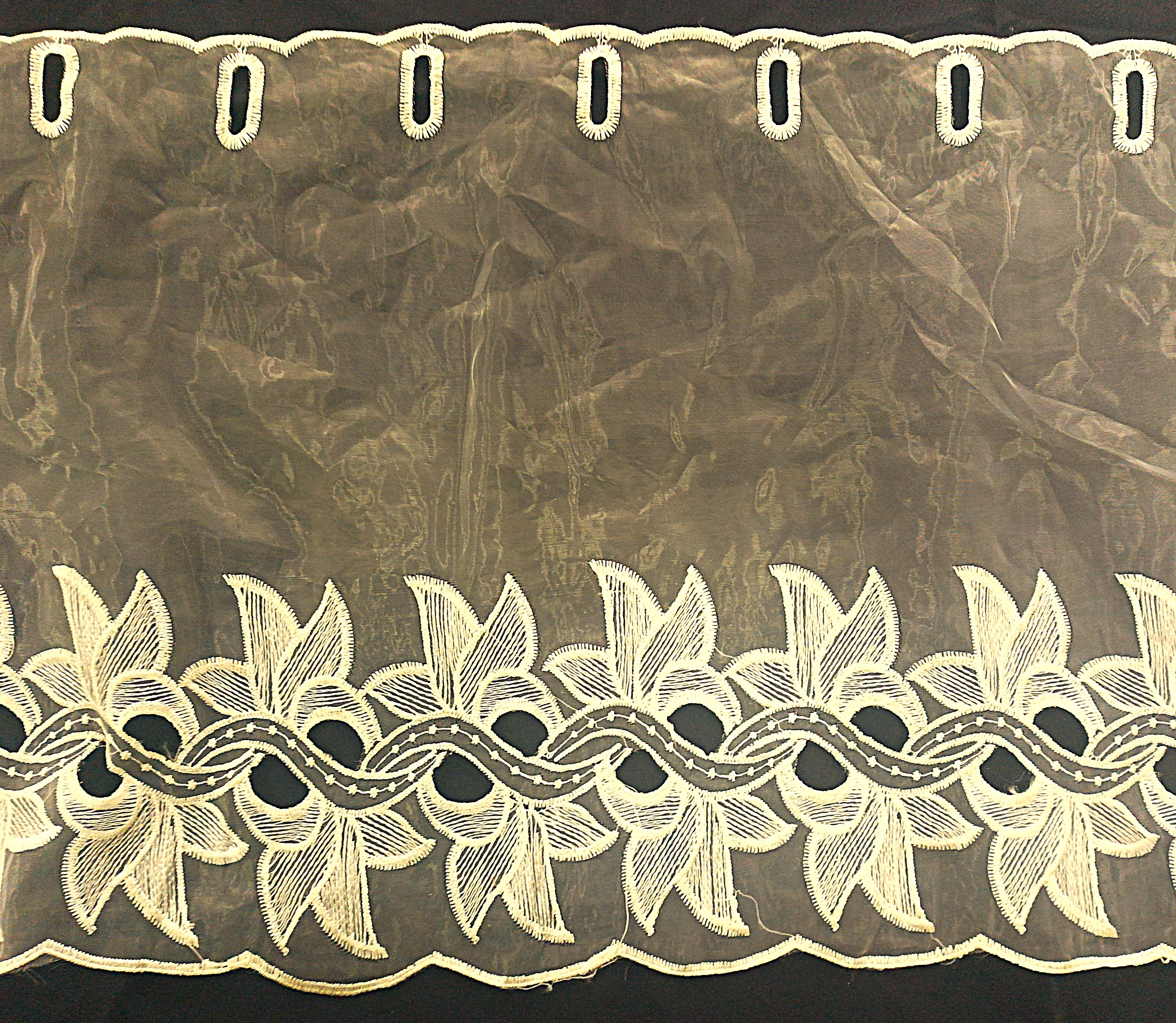 PEŁNA UROKU ZAZDROSTKA Z ORGANTYNY Z PIĘKNYM HAFTOWANYM KWIATOWYM WZOREM KOLOR ECRU WYSOKOŚĆ 40 CM PRODUCENT POLONTEX CZĘSTOCHOWA
