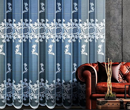 PIĘKNA FIRANKA Z BIAŁEGO ŻAKARDU Z EFEKTOWNYM WZOREM I DWOMA SZEROKIMI SZLAKAMI ZE STYLOWYM ORNAMENTEM DOSKONALE PREZENTUJE SIĘ W NOWOCZESNYCH, MINIMALISTYCZNYCH WNĘTRZACH, JAK RÓWNIEŻ W ARANŻACJACH TYPOWO KLASYCZNYCH. EFEKTOWNE ZDOBIENIA NA STRUKTURZE FIRANY TWORZĄ NIEZWYKLE ELEGANCKI KLIMAT I PODKREŚLAJĄ ORYGINALNY CHARAKTER POMIESZCZENIA. DOSKONALE PRZEPUSZCZA NATURALNE ŚWIATŁO, ROZŚWIETLAJĄC PRZESTRZEŃ, DODAJĄC BLASKU I ŚWIEŻOŚCI. FIRANKA IDEALNIE SIĘ UKŁADA I STANOWI PONADCZASOWĄ DEKORACJĘ OKNA O NIEPOWTARZALNYM, PEŁNYM UROKU DESIGNIE.