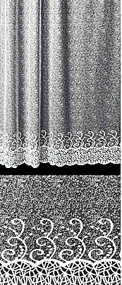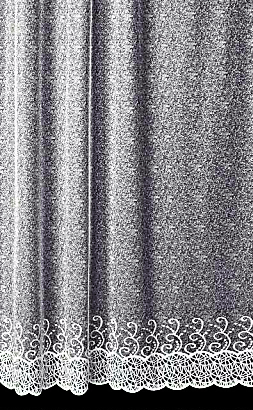 PIĘKNA FIRANKA ŻAKARDOWA W KOLORZE BIAŁYM Z GĘSTO NAKRAPIANYM WZOREM ORAZ DOŁEM ZDOBIONYM DESIGNEM PRZYPOMINAJĄCYM COTTON BALLS WYSOKOŚĆ 180 CM PRODUCENT POLONTEX CZĘSTOCHOWA