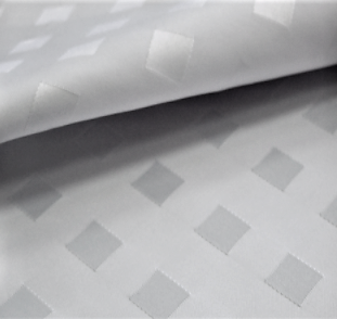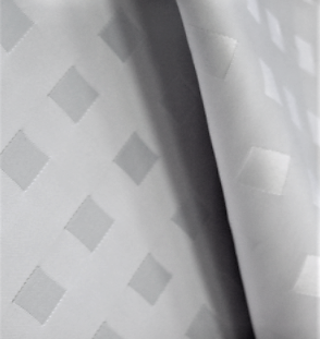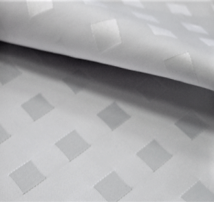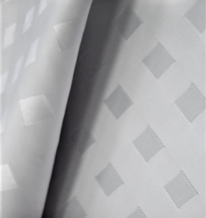 FAKTURA TKANINY JEST KRYJĄCA, NIE PRZEPUSZCZA ŚWIATŁA, WYMIARY KRATKI WE WZORZE TO 4 CM X 4 CM.