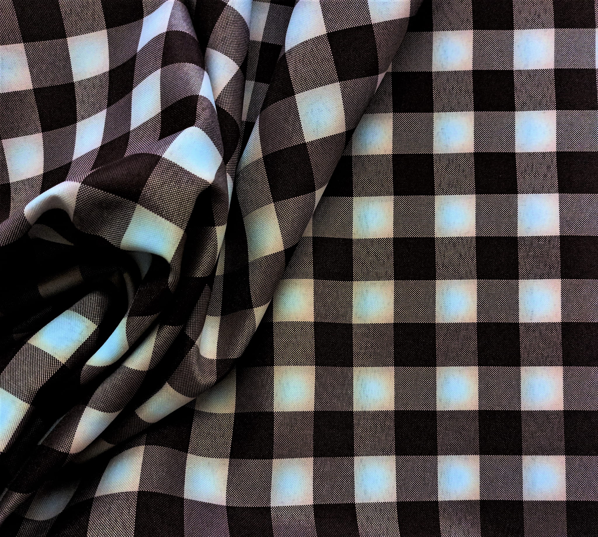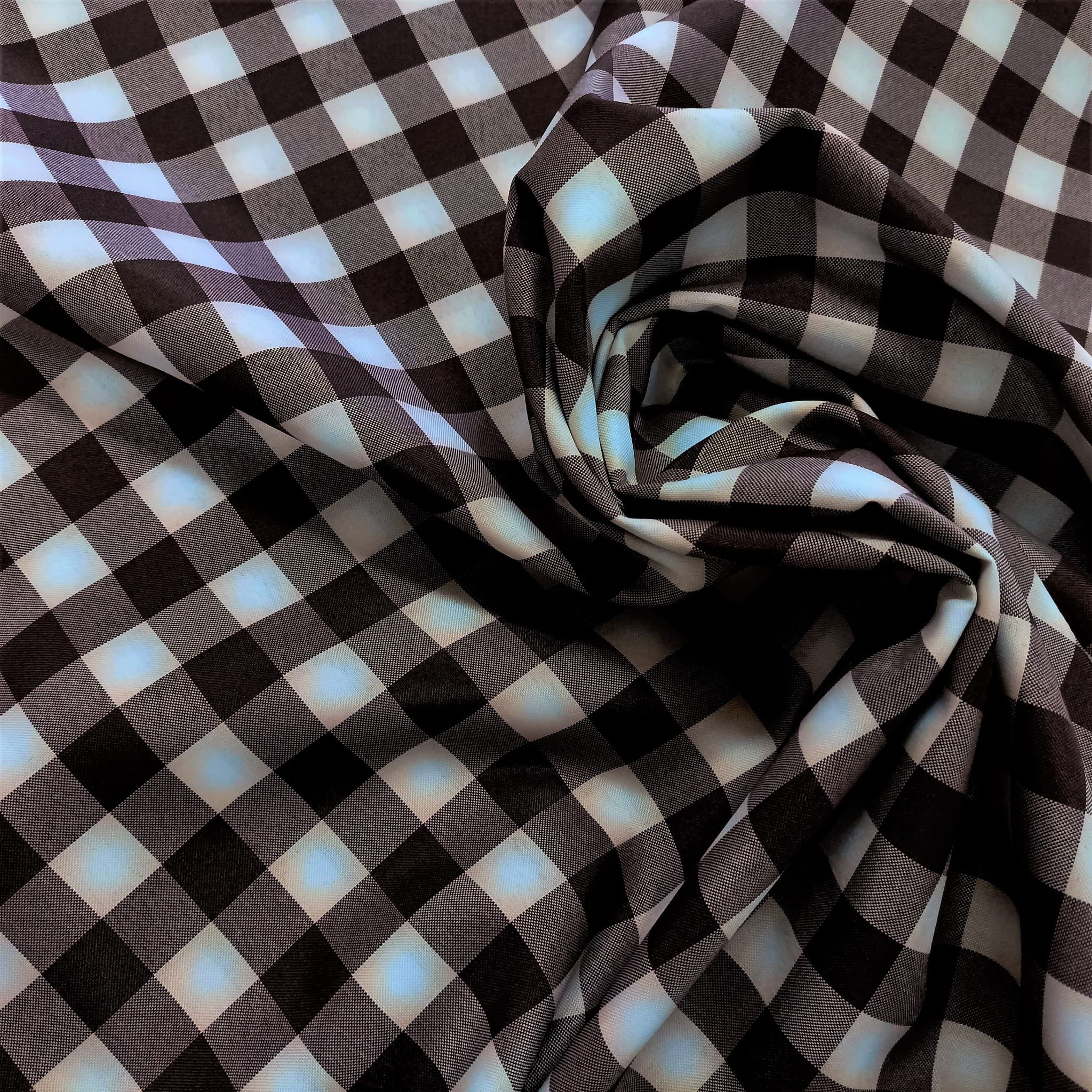 UWAGA - NA TKANINIE NIE WYSTĘPUJE ODCIEŃ ŚNIEŻNEJ BIELI - KRATKA W KOLORZE BIAŁYM JEST NA BRZEGACH DELIKATNIE ZABARWIONA NA KOLOR JASNEGO BRĄZU.