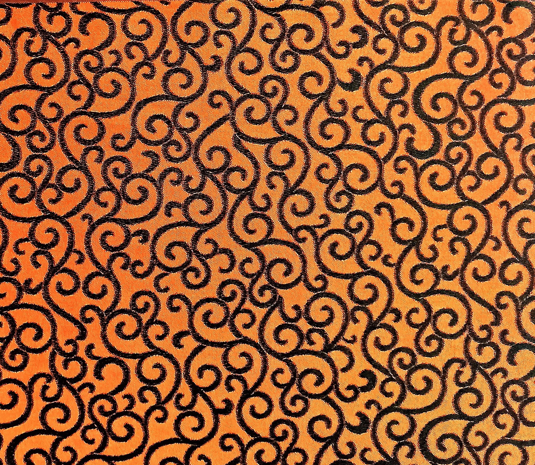 PRZEPIĘKNA DWUSTRONNA TKANINA ZASŁONOWA WZÓR ORIENTALNY W IDEALNIE DOBRANYCH BARWACH SOCZYSTEJ POMARAŃCZY I STONOWANEJ CZERNI SZEROKOŚĆ 170 CM PRODUCENT POLONTEX CZĘSTOCHOWA