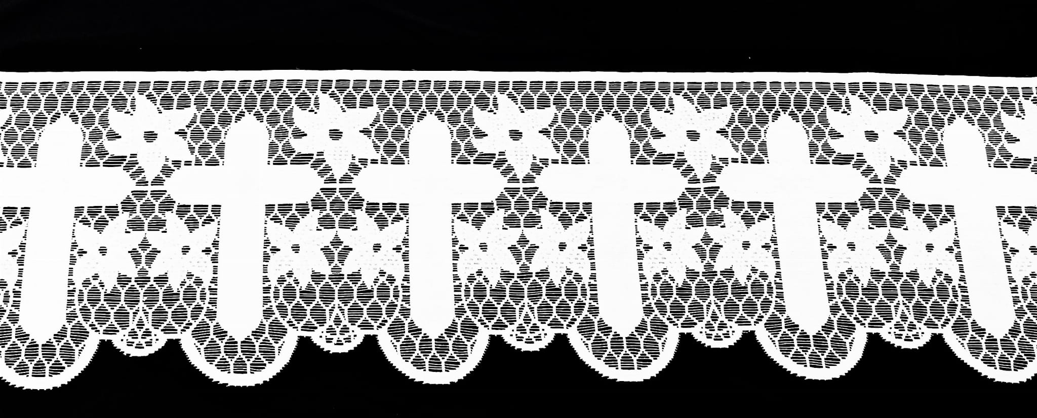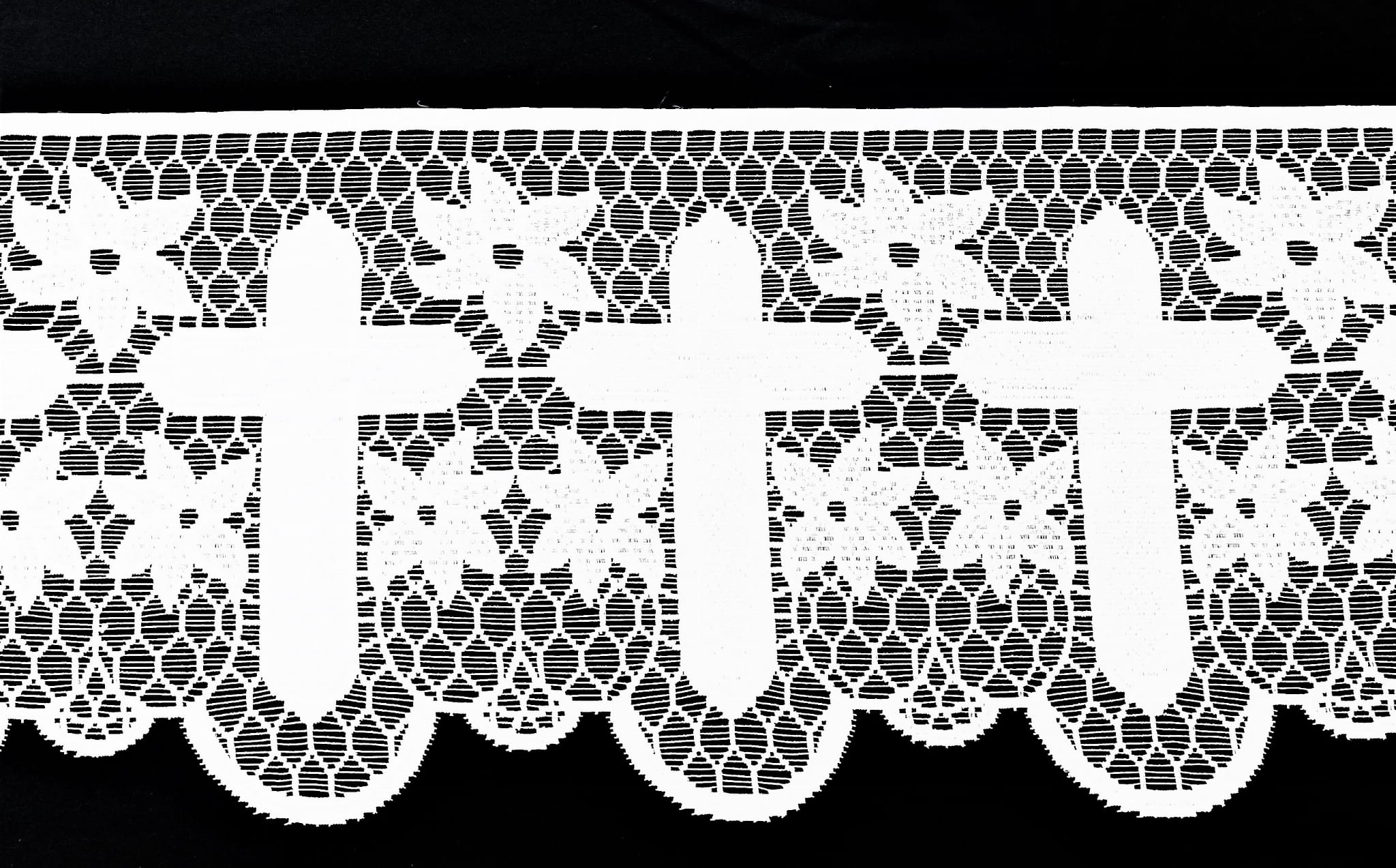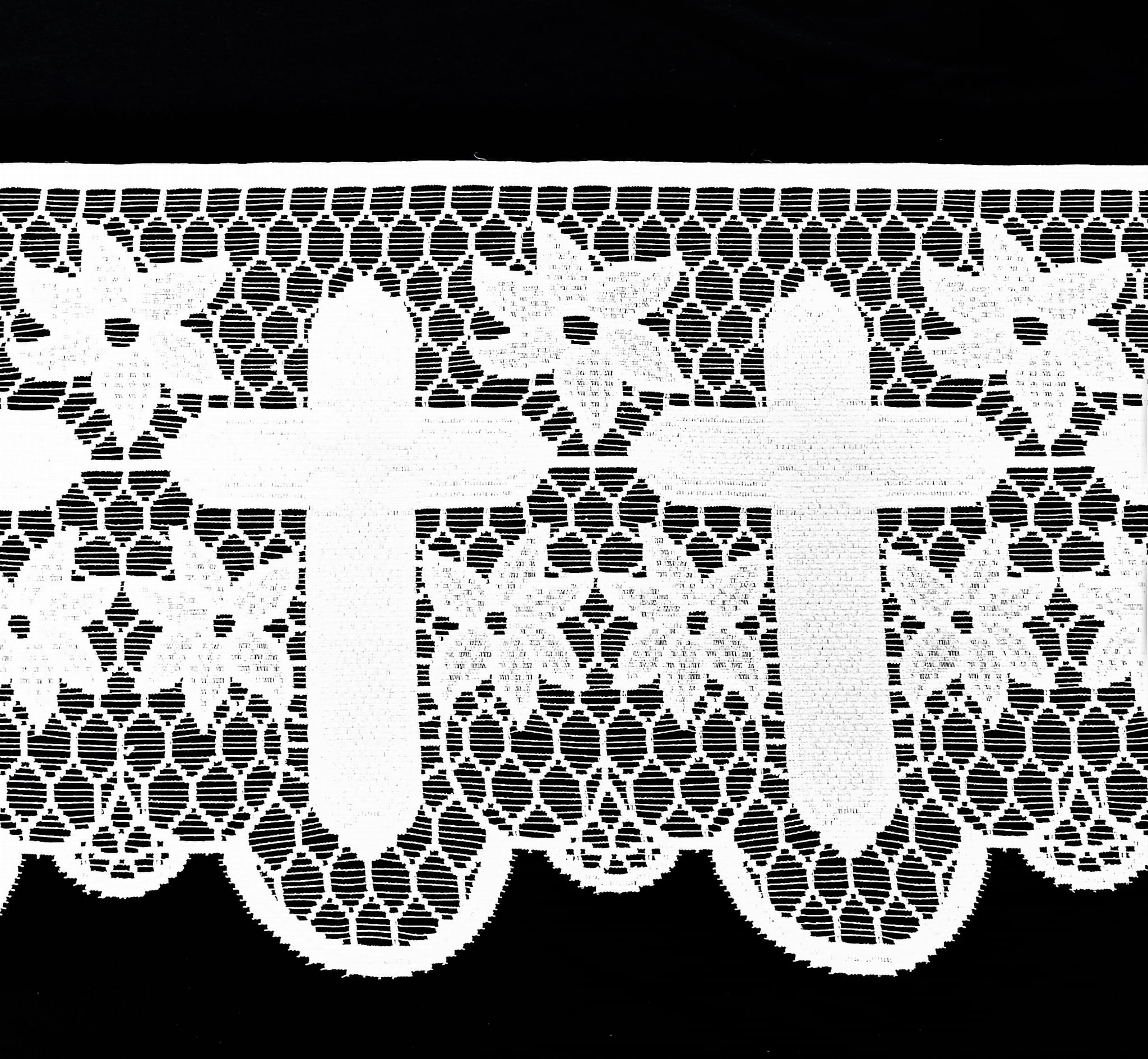 SAKRALNA KORONKA LITURGICZNA FIRANKA ŻAKARD RETRO VINTAGE KOLOR BIAŁY Z MOTYWEM KRZYŻA I PIĘKNYMI ZDOBIENIAMI WYSOKOŚĆ 40 CM PRODUCENT HAFT KALISZ