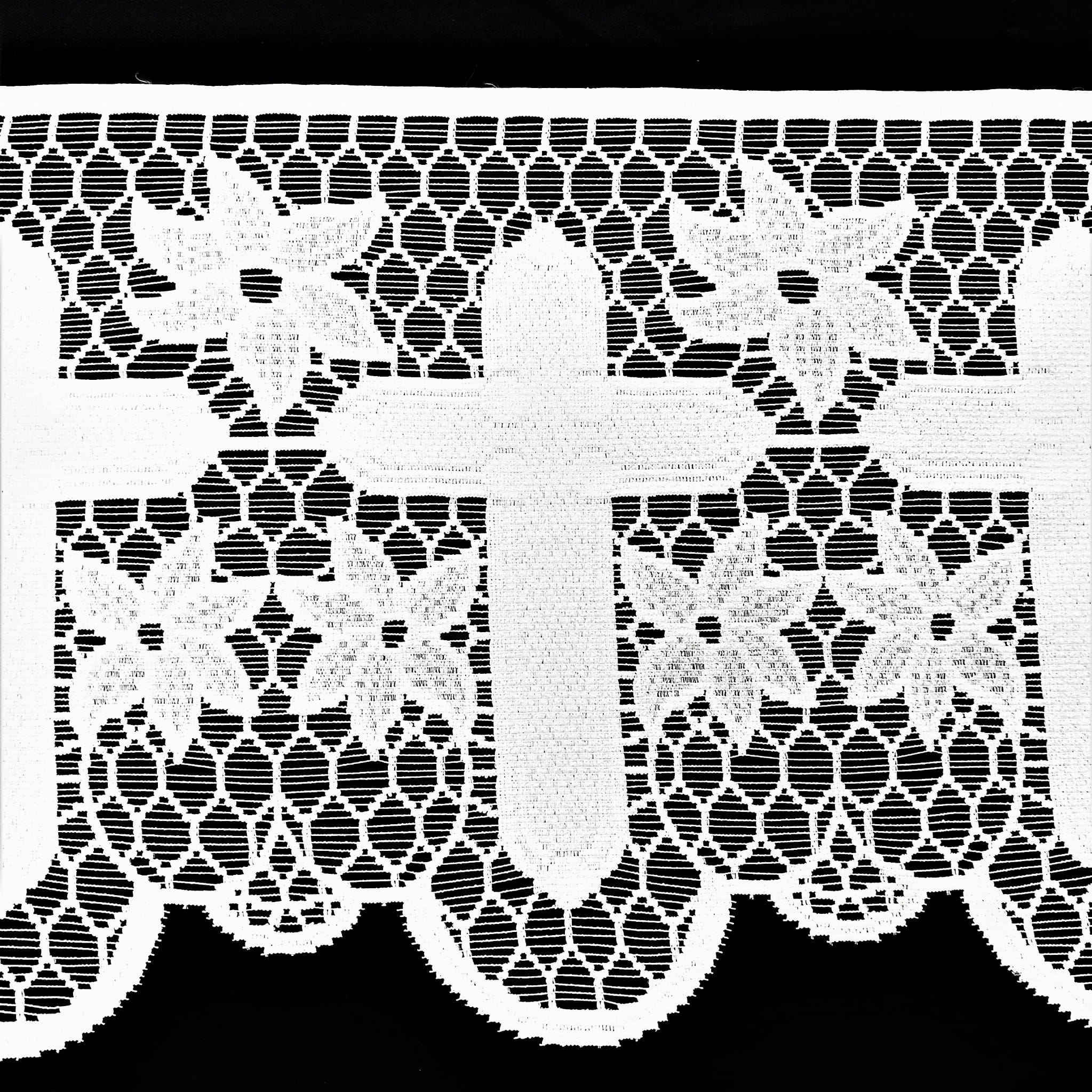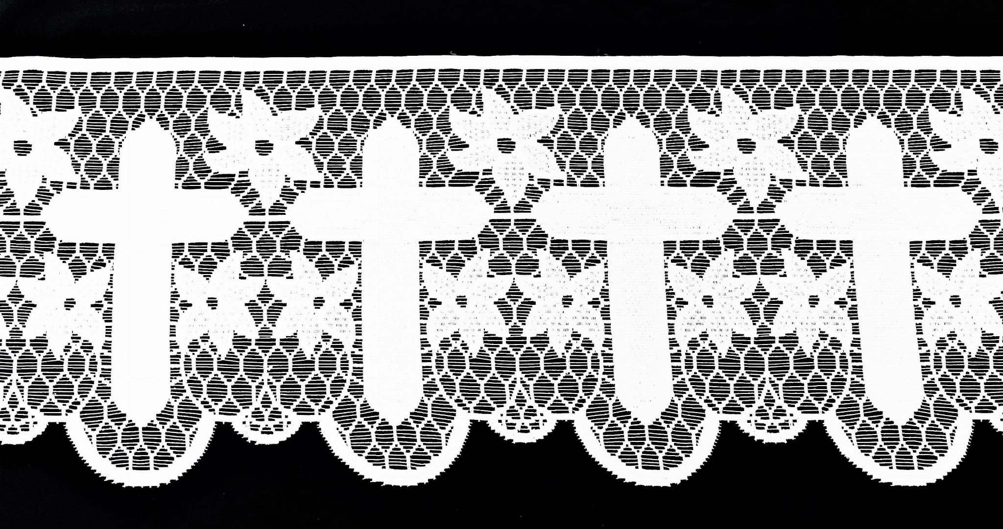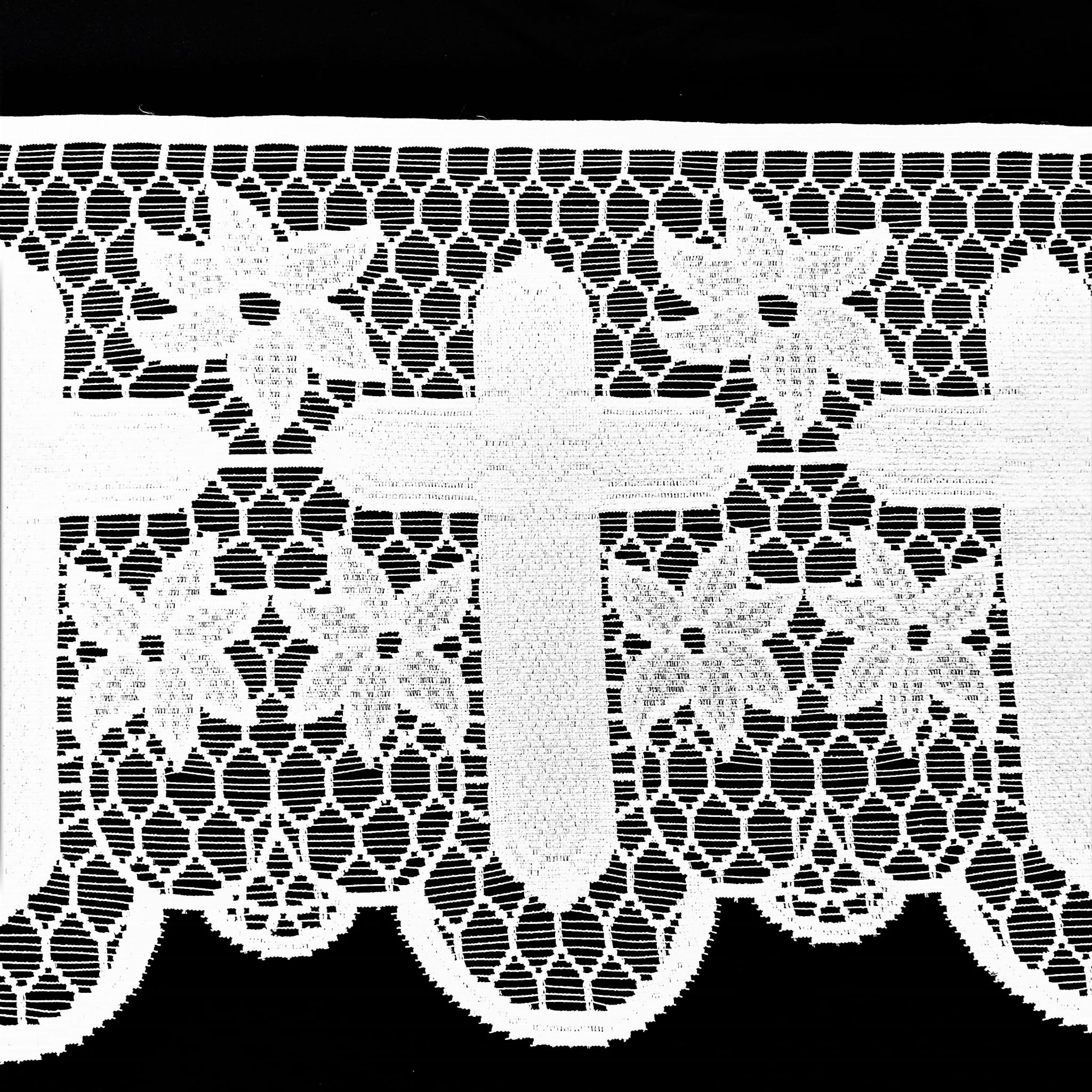 SAKRALNA KORONKA LITURGICZNA FIRANKA ŻAKARD RETRO VINTAGE KOLOR BIAŁY Z MOTYWEM KRZYŻA I PIĘKNYMI ZDOBIENIAMI WYSOKOŚĆ 40 CM PRODUCENT HAFT KALISZ