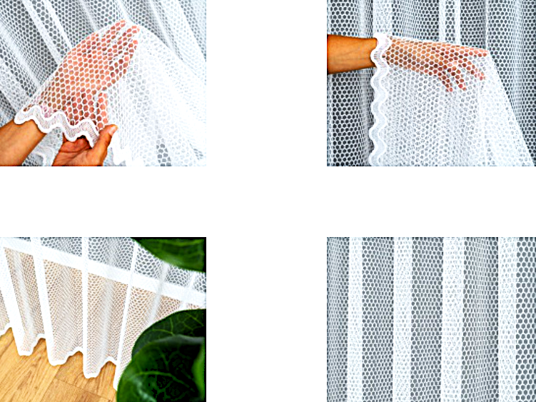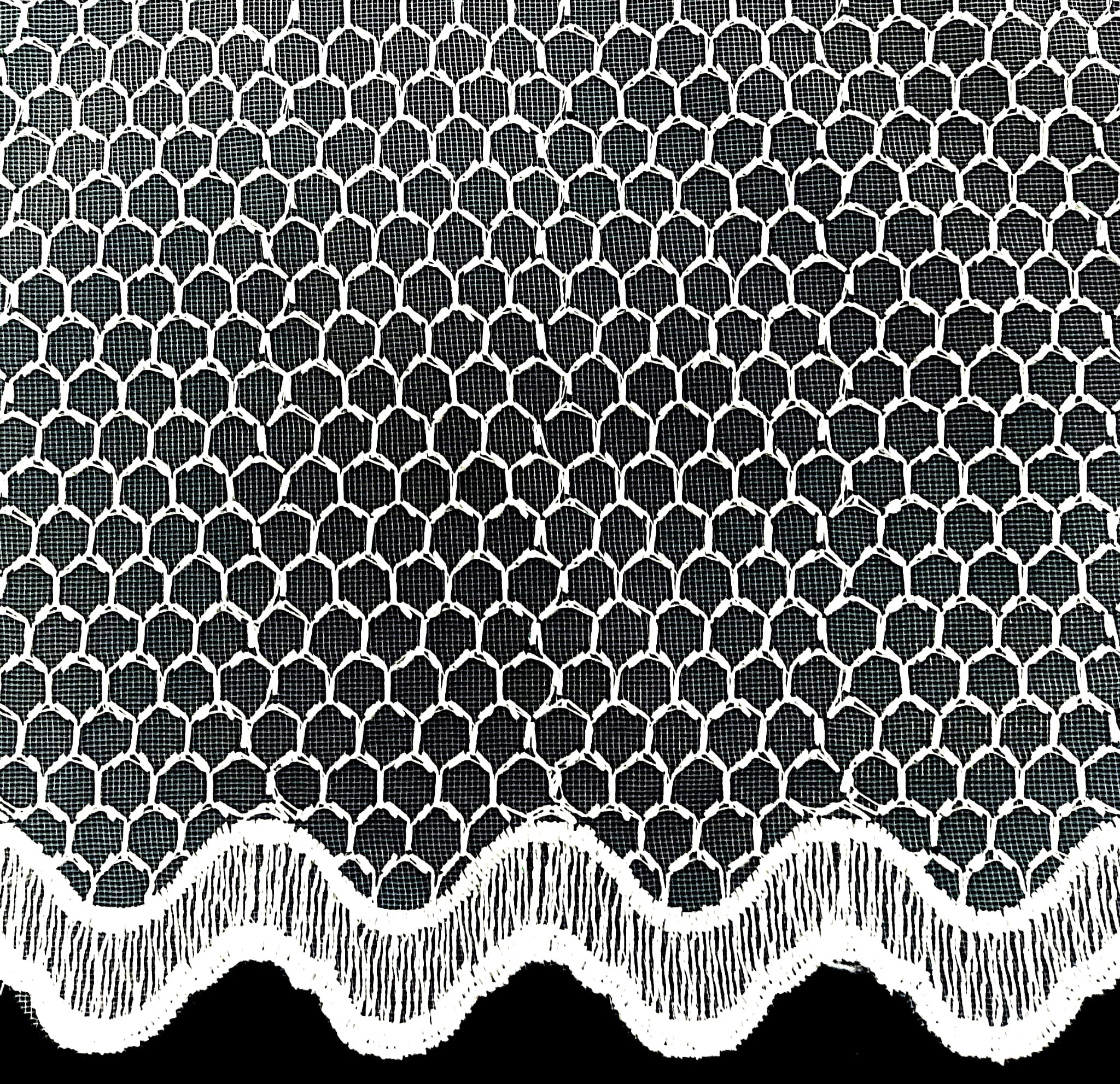 STYLOWA FIRANA MARKIZETA SIATECZKA DELIKATNA STRUKTURA PLASTER MIODU W KOLORZE BIAŁYM POŁYSK GLAMOUR Z ORYGINALNYM DOLNYM WYKOŃCZENIEM WYSOKOŚĆ 280 CM PRODUCENT TURCJA