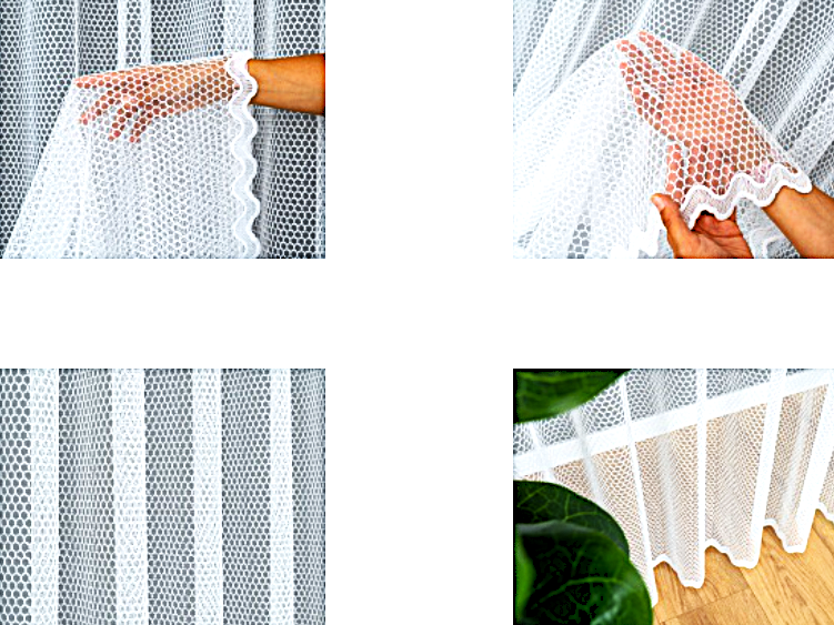 STYLOWA FIRANA MARKIZETA SIATECZKA DELIKATNA STRUKTURA PLASTER MIODU W KOLORZE BIAŁYM Z PIĘKNYM POŁYSKIEM GLAMOUR I ORYGINALNYM DOLNYM WYKOŃCZENIEM TO WYJĄTKOWA ARANŻACJA OKNA. FIRANA PREZENTUJE SIĘ NIEZWYKLE EFEKTOWNIE WE WNĘTRZACH W STYLU KLASYCZNYM, MINIMALISTYCZNYM, BOHO, GLAMOUR, LOFTOWYM, RUSTYKALNYM, SKANDYNAWSKIM, INDUSTRIALNYM, PROWANSALSKIM, SHABBY CHIC, EKLEKTYCZNYM ORAZ ART DECO. DOSKONALE WPISUJE SIĘ W KANON KLASYCZNEJ, PONADCZASOWEJ ELEGANCJI. DYSKRETNIE POŁYSKUJĄCA SREBRNA NITKA TWORZY SPEKTAKULARNY EFEKT MIGOCZĄCYCH REFLEKSÓW. UNIKALNY DESIGN Z PRZEPIĘKNYM BŁYSKIEM IDEALNIE PODKREŚLA LEKKOŚĆ I SUBTELNOŚĆ PRZESTRZENI, WPROWADZA NATURALNĄ ŚWIEŻOŚĆ I NADAJE WNĘTRZU SPEKTAKULARNEGO CHARAKTERU.