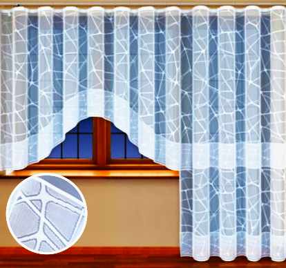 FIRANKA GOTOWA ŻAKARD KOLOR BIAŁY Z NIEZWYKLE EFEKTOWNYM WZOREM TO ORYGINALNA ARANŻACJA W NOWOCZESNYM WYDANIU. ORYGINALNY DESIGN PREZENTUJE SIĘ STYLOWO I NADAJE WNĘTRZU WYRAFINOWANEGO CHARAKTERU. FIRANKA PODKREŚLA ELEGANCJĘ PRZESTRZENI, WPROWADZA ŚWIEŻOŚĆ, LEKKOŚĆ I SUBTELNOŚĆ DEKORACJI.