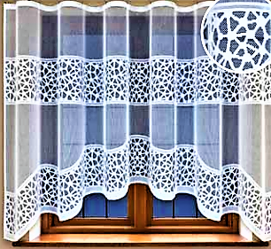 GOTOWA FIRANKA Z BIAŁEGO ŻAKARDU Z PRZEPIĘKNYM WZOREM O STRUKTURZE PRZYPOMINAJĄCEJ SIATECZKĘ TO NOWOCZESNA OZDOBA OKNA W EFEKTOWNYM WYDANIU. FIRANA DOSKONALE WPISUJE SIĘ W AKTUALNE TRENDY ARANŻACYJNE, DODAJE BLASKU, LEKKOŚCI ORAZ ŚWIEŻOŚCI. DOSKONALE SIĘ UKŁADA, A ORYGINALNIE WYCIĘTY DÓŁ W POŁĄCZENIU ZE STYLOWYM WZOREM DECYDUJE O PEŁNYM UROKU, FINEZYJNYM KLIMACIE WNĘTRZA.