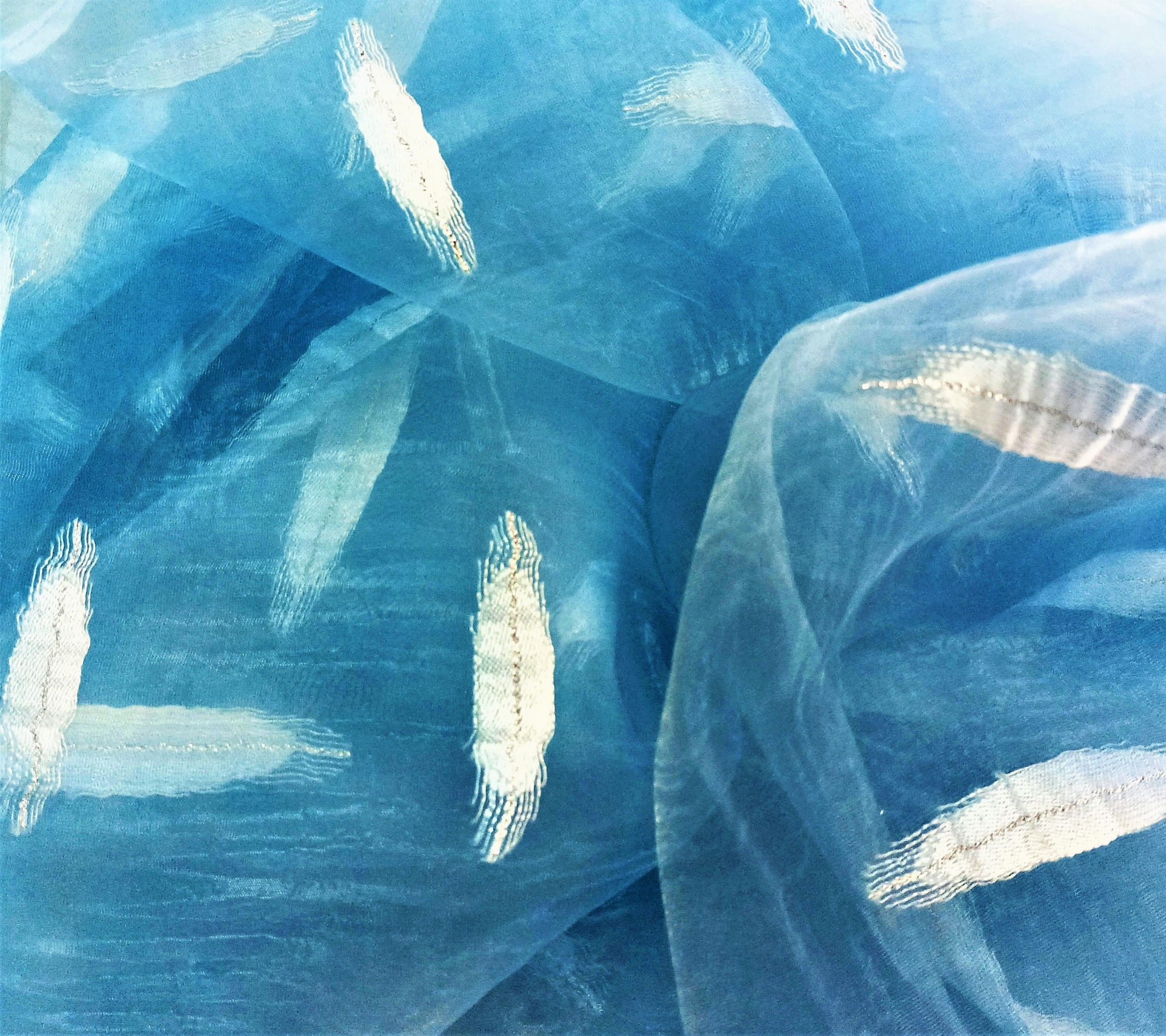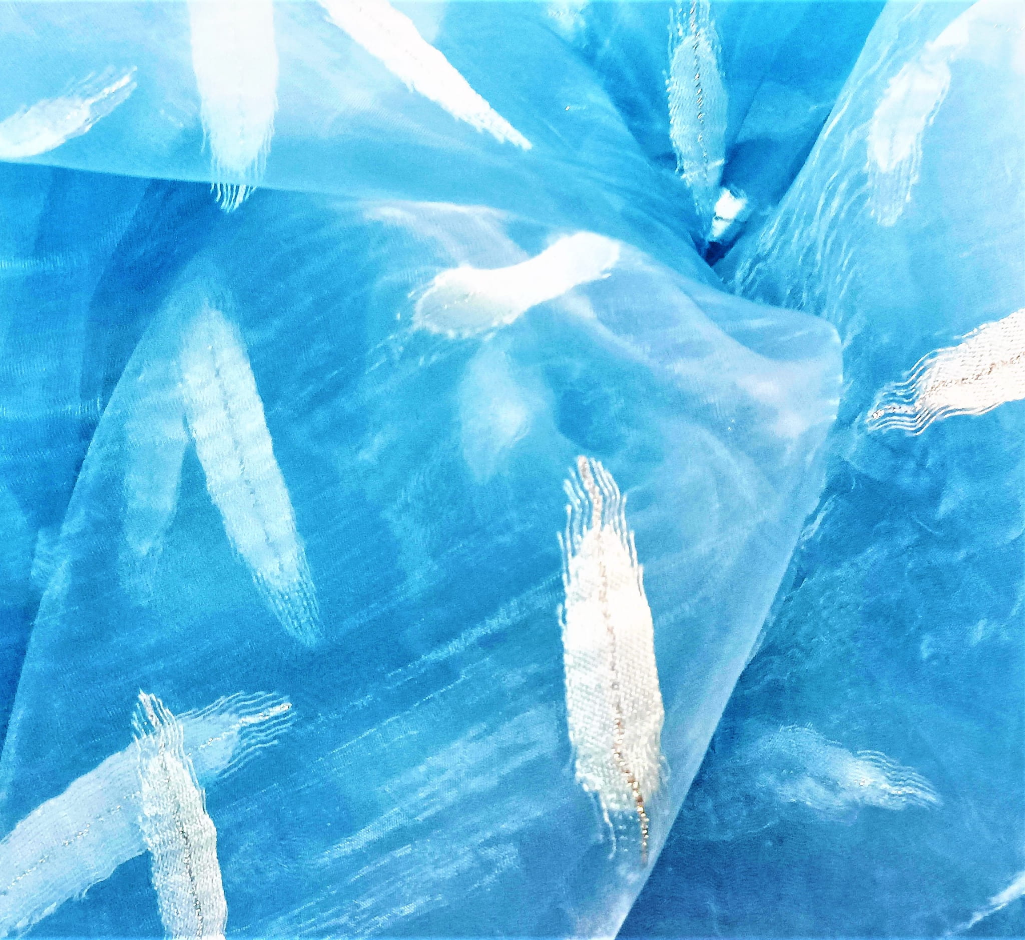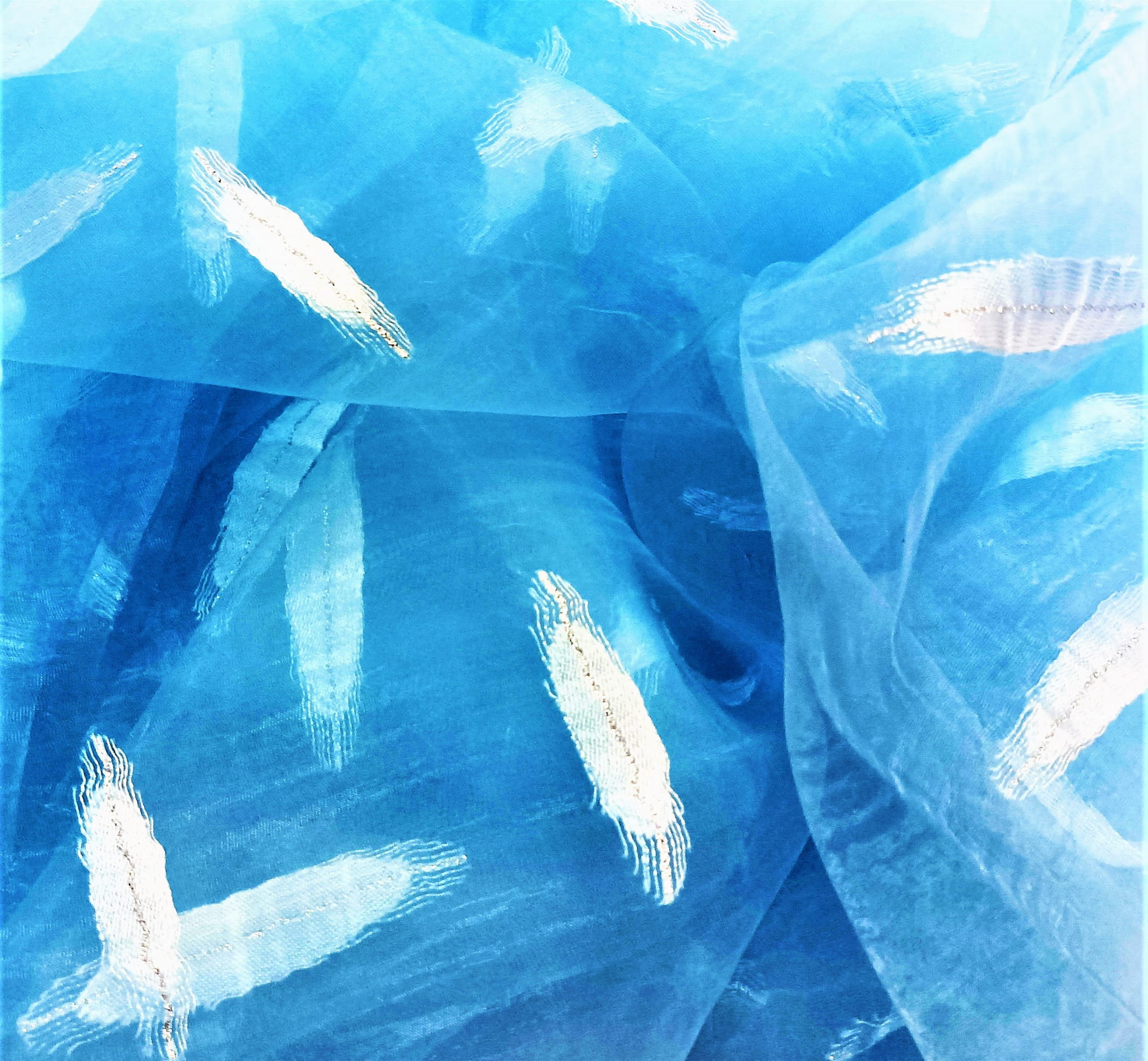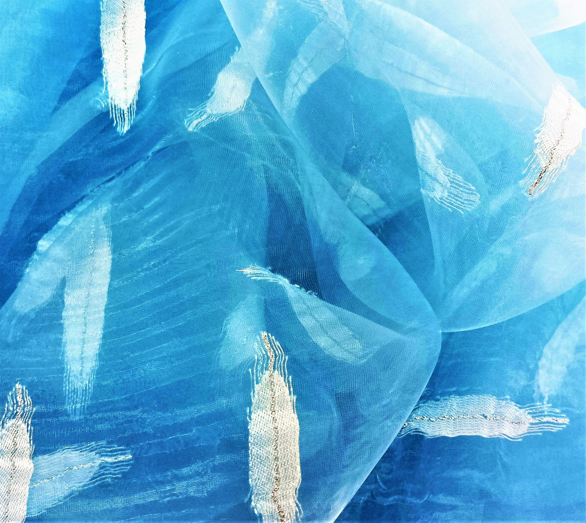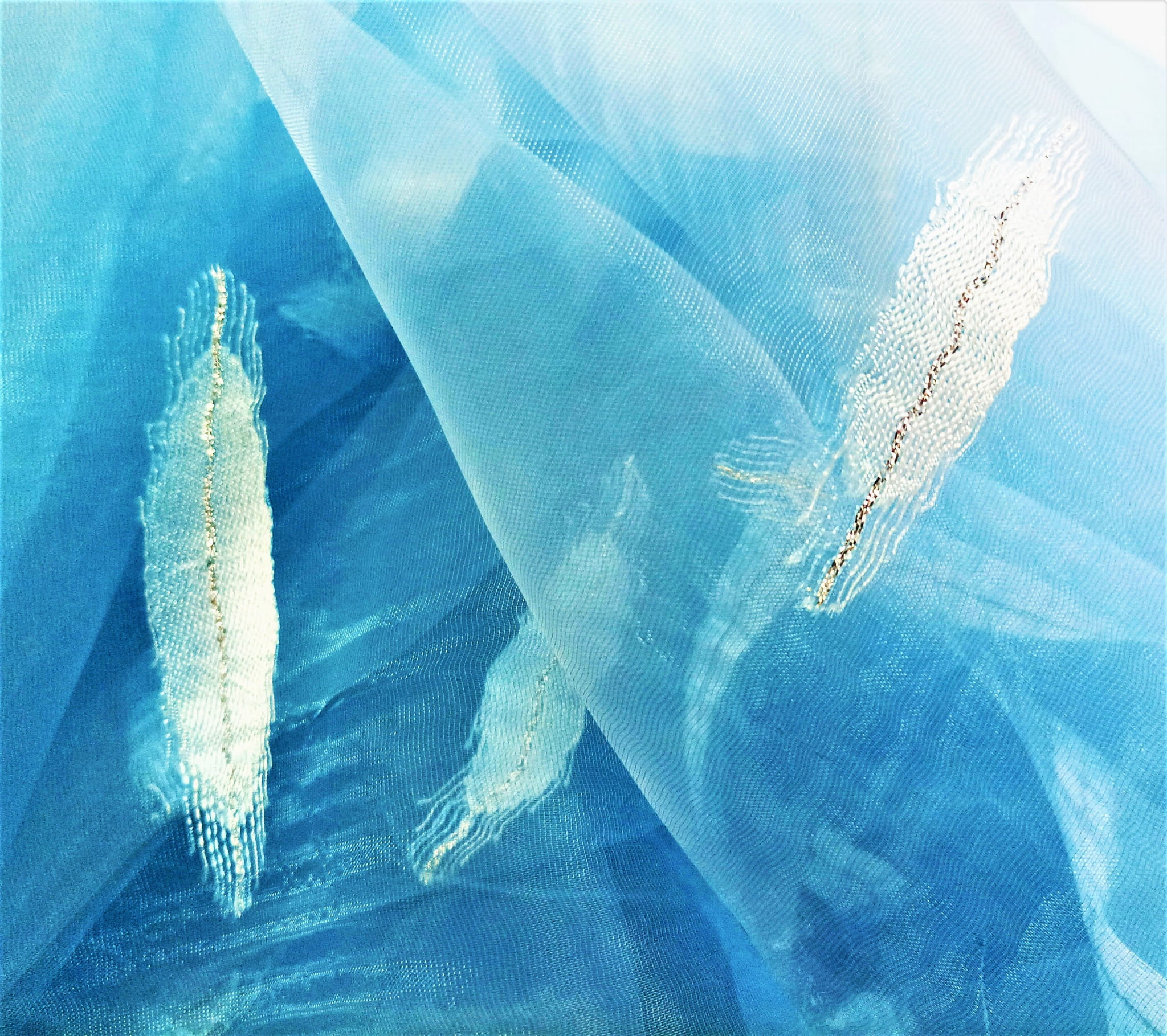 STYLOWA KRESZOWANA ORGANTYNA PREMIUM W KOLORZE NIEBIESKIM Z ORYGINALNYM HAFTEM W POSTACI BŁĘKITNEGO WZORU, ZDOBIONEGO SREBRNĄ NITKĄ POŁYSK GLAMOUR PREZENTUJE SIĘ NIEZWYKLE EFEKTOWNIE JAKO UNIKALNA FIRANKA LUB OZDOBNA ZASŁONA. ORGANTYNA DELIKATNIE FILTRUJE PROMIENIE SŁONECZNE, TWORZĄC PEŁEN UROKU, NIEBANALNY KLIMAT PRZESTRZENI. HAFTOWANY WZÓR W POŁĄCZENIU Z NIEBIESKĄ BARWĄ ORAZ SUBTELNIE KRESZOWANĄ STRUKTURĄ ORGANTYNY WYGLĄDA DOSKONALE I ZACHWYCA SWOIM NIEPOWTARZALNYM DESIGNEM.