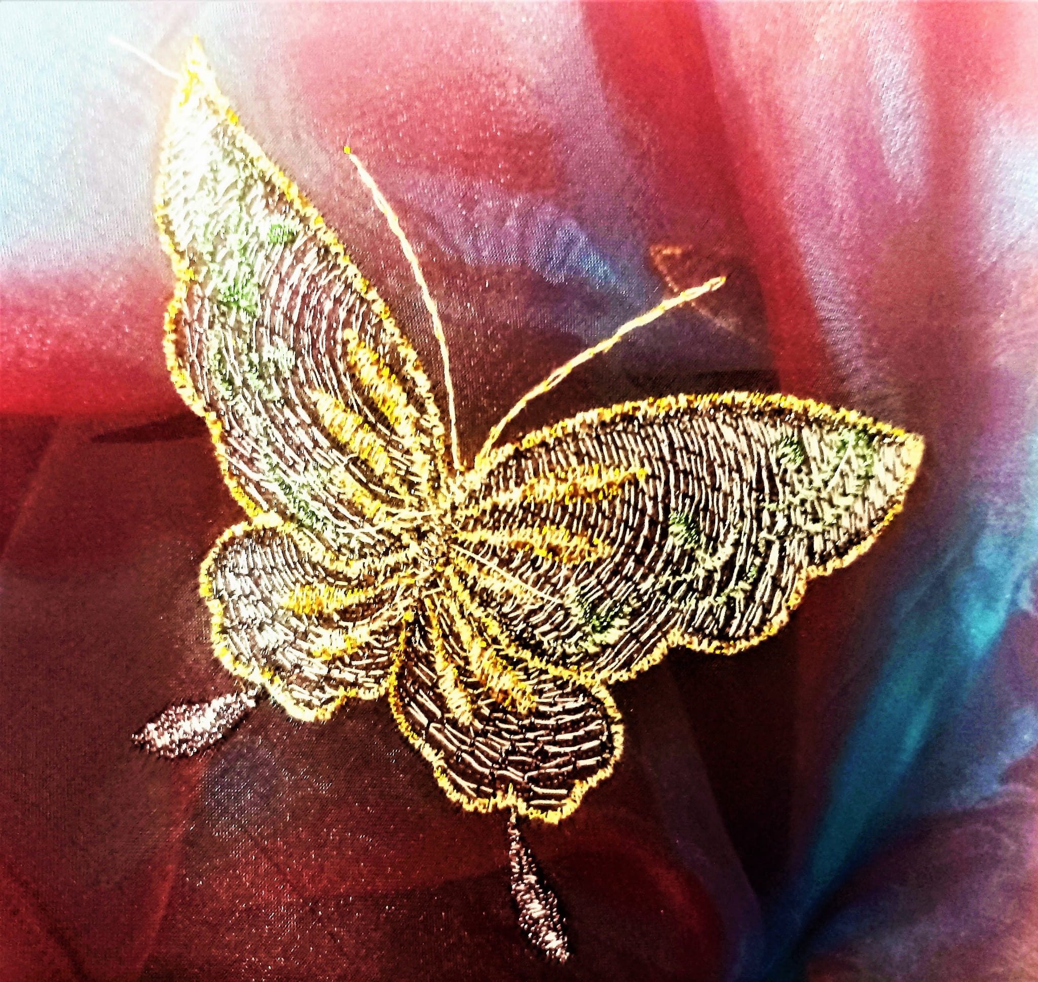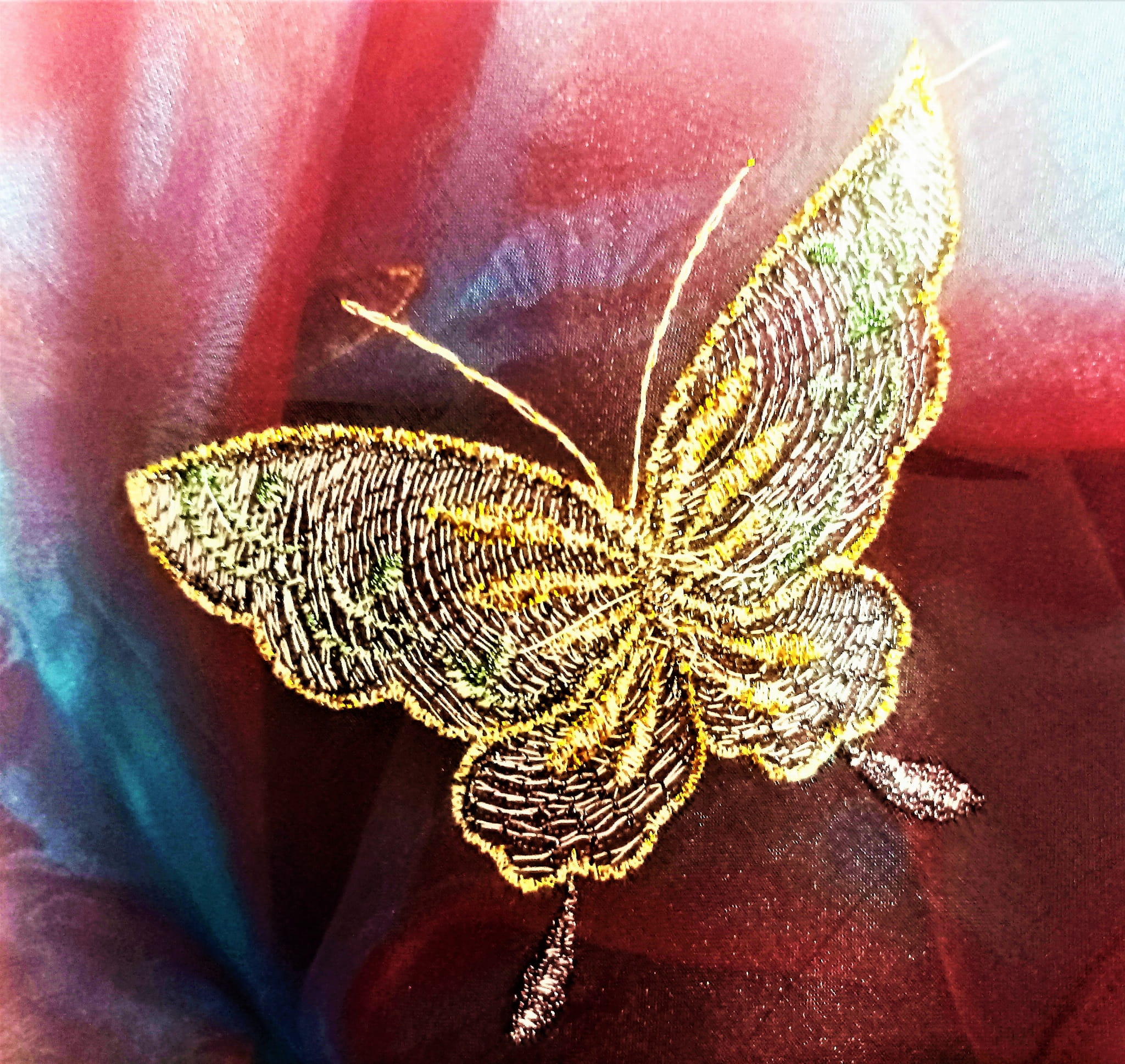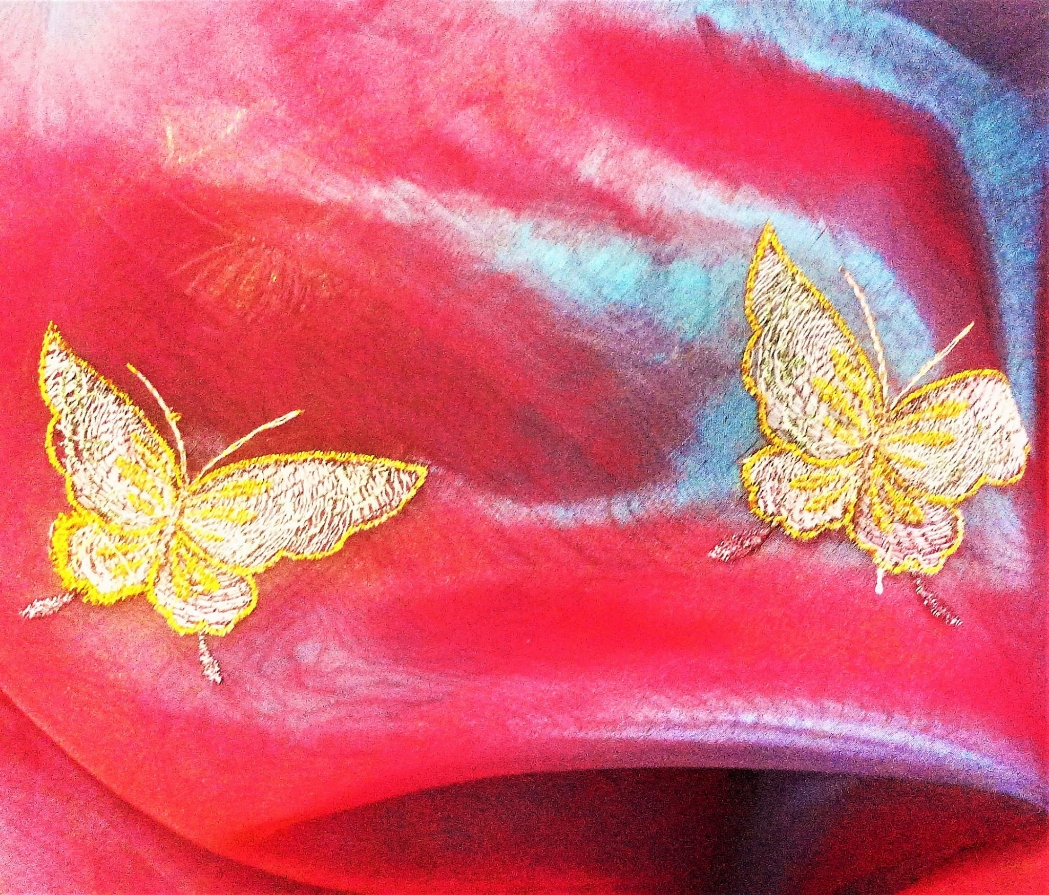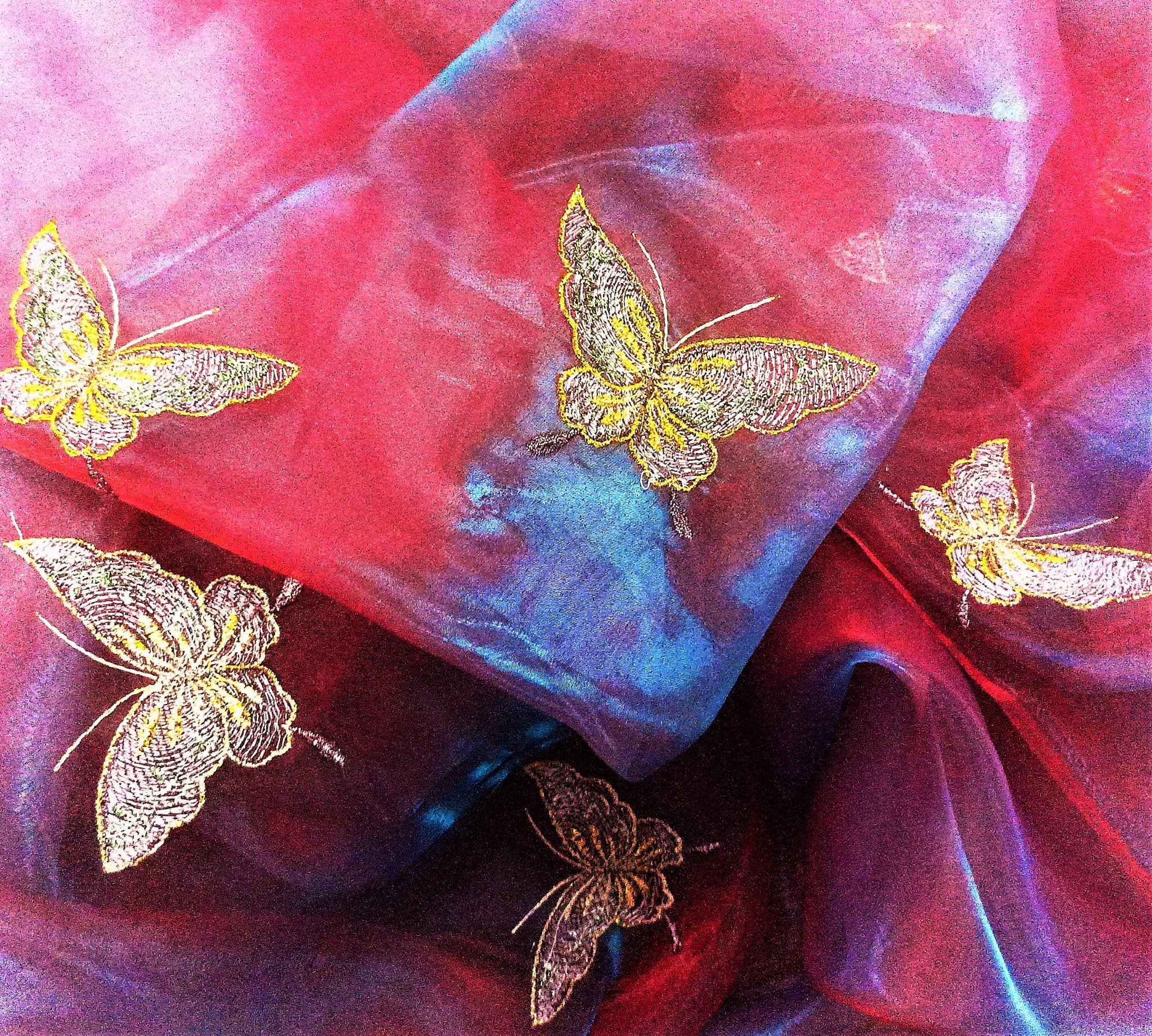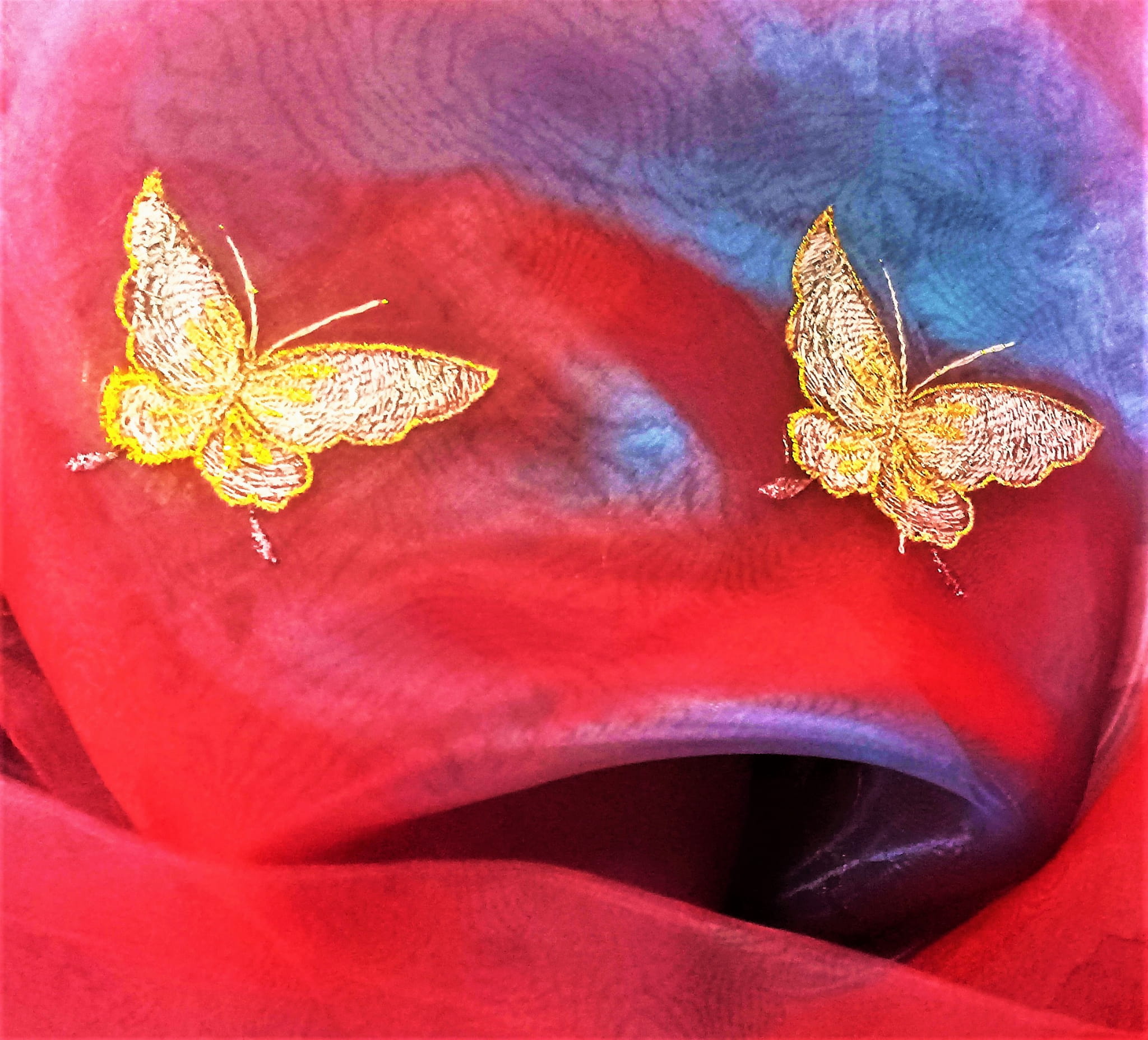STYLOWA ORGANTYNA PREMIUM W DWUTONOWYCH ODCIENIACH BURGUNDU I FIOLETU POŁYSK GLAMOUR Z PIĘKNYM HAFTEM W POSTACI DUŻYCH MOTYLI W ZŁOTO-SREBRNEJ TONACJI TO NIEZWYKLE ORYGINALNA, PEŁNA BLASKU DEKORACJA OKNA. SUBTELNIE FILTRUJE PROMIENIE SŁONECZNE, JEST LEJĄCA, MIĘKA I BARDZO PLASTYCZNA. DOSKONAŁE POŁĄCZENIE KOLORYSTYCZNE IDEALNIE HARMONIZUJE Z EFEKTOWNIE POŁYSKUJĄCYM, HAFTOWANYM PRINTEM, PREZENTUJĄC SIĘ SPEKTAKULARNIE JAKO UNIKALNA FIRANKA LUB OZDOBNA ZASŁONA W KLIMACIE BOHO, RETRO, VINTAGE, EKLEKTYCZNYM, ROMANTYCZNYM, ETNO ORAZ GLAMOUR