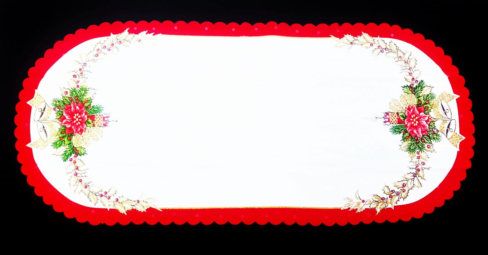 ŚWIĄTECZNA SERWETKA BIEŻNIK Z ELEGANCKIM WZOREM W KOLORZE BIELI ORAZ CZERWIENI TO STYLOWA DEKORACJA, KTÓRA PODKREŚLA WYJĄTKOWY KLIMAT ARANŻACJI. ORYGINALNY MOTYW ŚWIĄTECZNY W POSTACI WYRAZISTEGO ORNAMENTU PREZENTUJE SIĘ NIEZWYKLE EFEKTOWNIE, WPROWADZAJĄC DO WNĘTRZA MAGICZNY, PEŁEN CIEPŁA NASTRÓJ.
