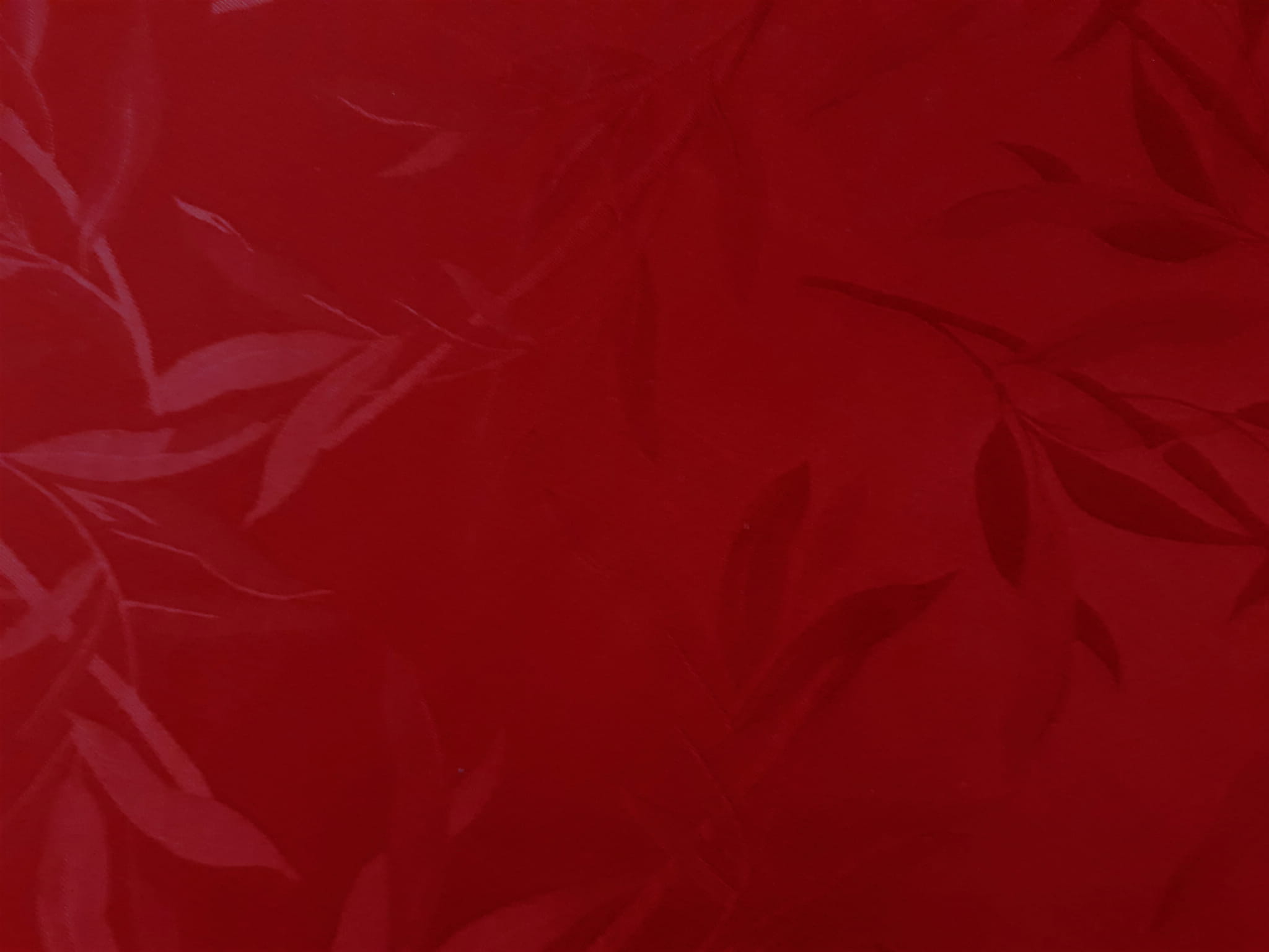 TKANINA ZASŁONOWA POLIESTROWA W KOLORZE BORDOWYM Z WYTŁACZANYMI PODŁUŻNYMI LISTKAMI W TYM SAMYM KOLORZE. NIE PRZEPUSZCZA PROMIENI SŁONECZNYCH, DLATEGO TEŻ DOSKONALE NADAJE SIĘ DO PRZYCIEMNIENIA POMIESZCZENIA I TYM SAMYM DO ZACHOWANIA PRYWATNOŚCI. INTENSYWNY KOLOR TKANINY NIE ULEGA SPRANIU I DŁUGO ZACHOWUJE SWOJĄ NASYCONĄ BARWĘ.