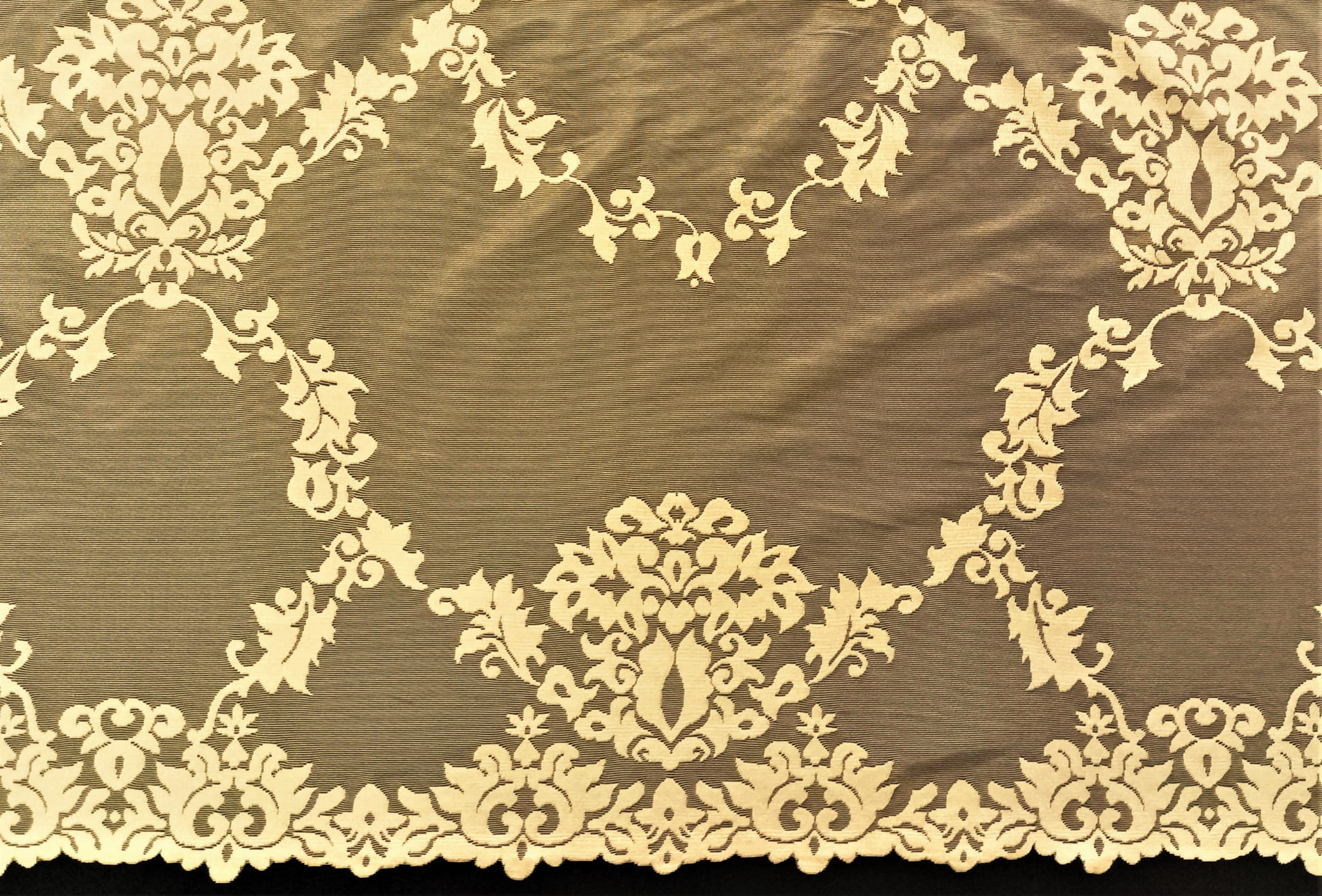 WYTWORNA FIRANKA ŻAKARDOWA Z BOGATYM WZOREM INSPIROWANYM ORIENTEM W PIĘKNYM KOLORZE ECRU WYSOKOŚĆ 250 CM PRODUCENT HAFT KALISZ